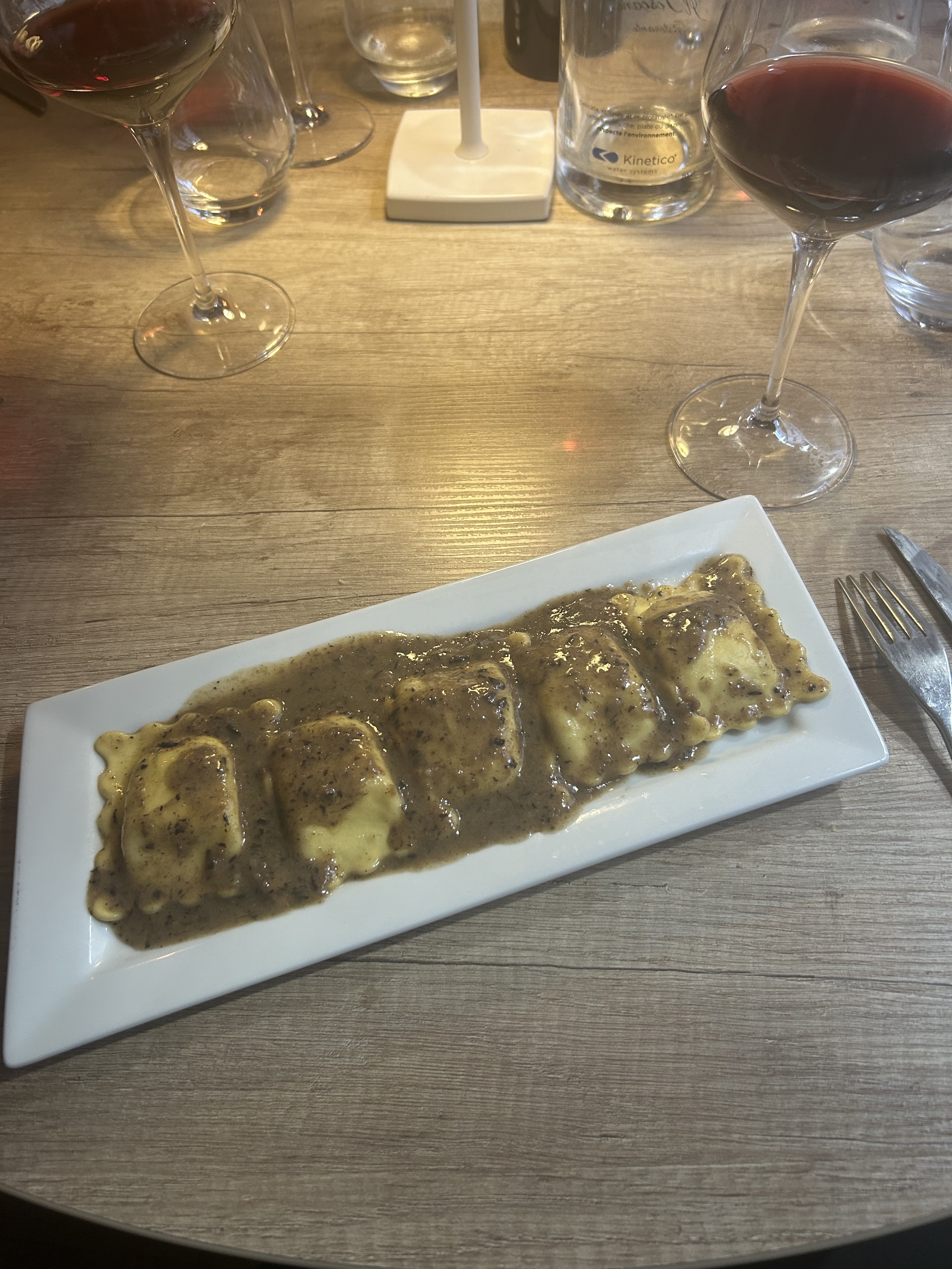 Le serveur était très gentil et serviable. Il avait des photos des plats sur un iPad pour que nous puissions voir ce que chacun impliquait. Nous avons commandé des pâtes aux calamars, des raviolis aux truffes, du steak aux truffes et de la bolognaise. Tous étaient merveilleux, pleins de saveurs et authentiques italiens. Parfaitement cuit. La recommandation de vins était parfaite. Je suggère fortement cet endroit!