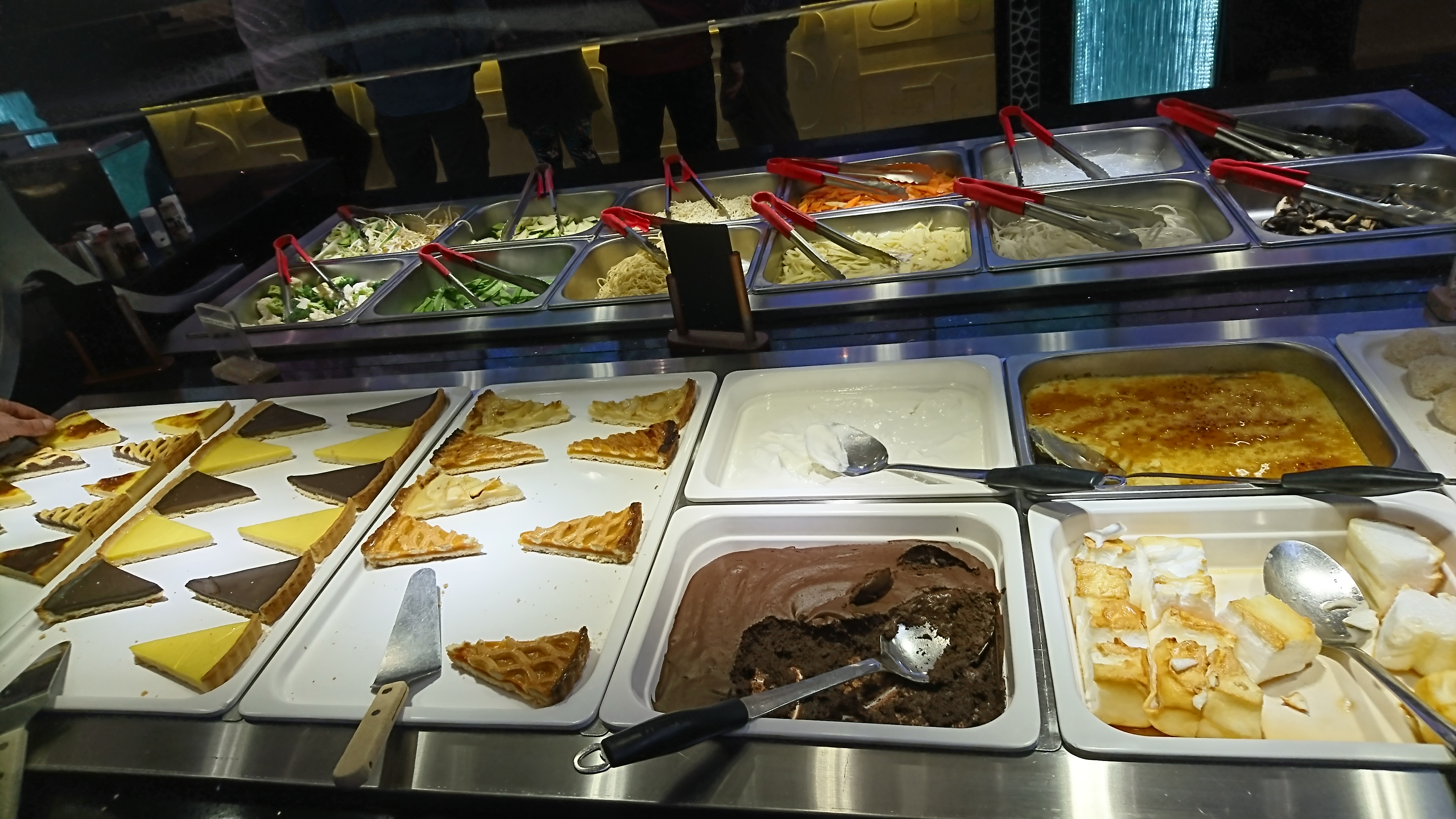 Un choix énorme entre l'apero et les desserts !! 👍 👍 Tout est à volonté, fruits de mer, sushis, entrées, légumes, plats cuisinés, fromages, desserts, glaces, bonbons, boissons etc.... 😀 Et très propre !!!
