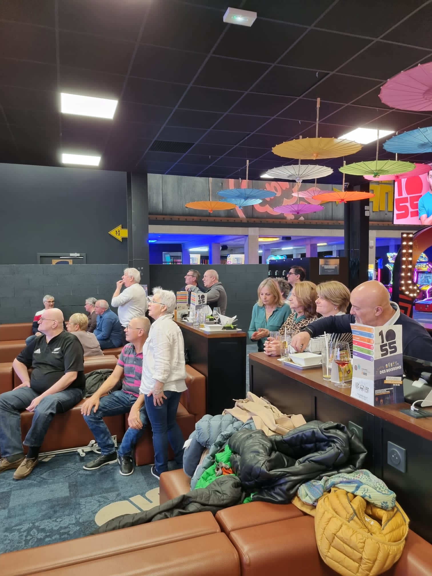 Franchement cadre vraiment sympathique mais dommage je trouve que l accueil est à revoir, le personnel pas souriant. En plus 10 euros pour 2 boissons et obliger de me déplacer au bar pour passer la commande, malgré les 2 barman avec 1 autre membre du personnel qui était les bras croisés et une autre de leurs collègues qui discutait avec une de ses amis qui était venu lui rendre visite. C’était donc la première fois que j allait au 10.55, avec ma femme et mon petit garçon. Je ne connaissais pas le concept ni le fonctionnement pour les enfants, si je dois prendre un abonnement ou autre. J ai alors demandé des renseignements et la ont m’a tout simplement dit d aller sur internet pour les explications, mais aussi pour les réservations j en n ai donc déduis que le personnel n es pas commercial du tout et manque de formation. j était venu pour faire une partie de bowling avec ma femme mais aussi pour que mon fils accède aux loisirs et finalement je suis reparti après avoir consommé ma boisson et jouer au jeu d arcade.