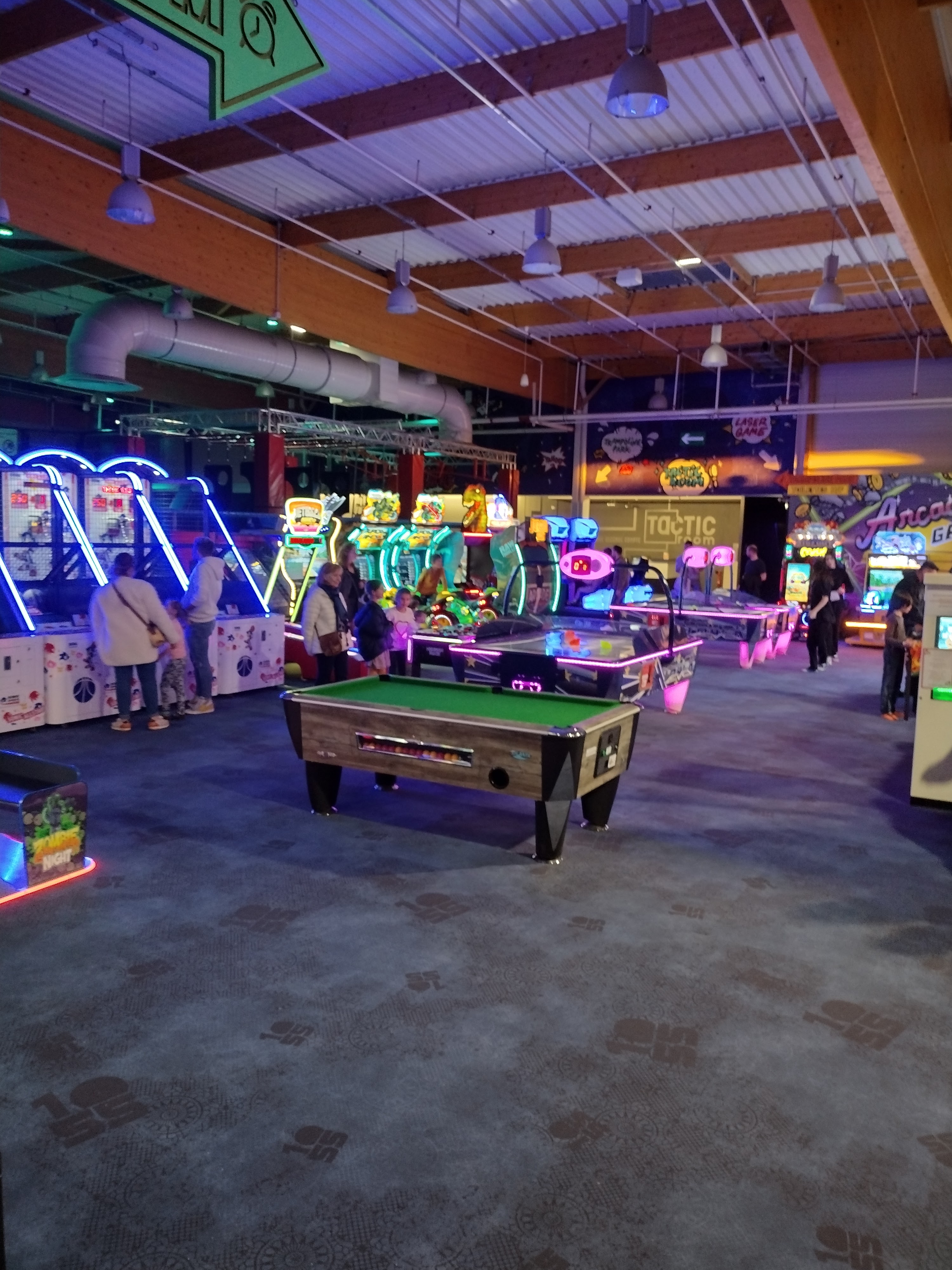 Une belle salle de jeux pour les jeunes et les moins jeunes ! La brasserie est correcte. Je conseille cet endroit pour passer un bon moment