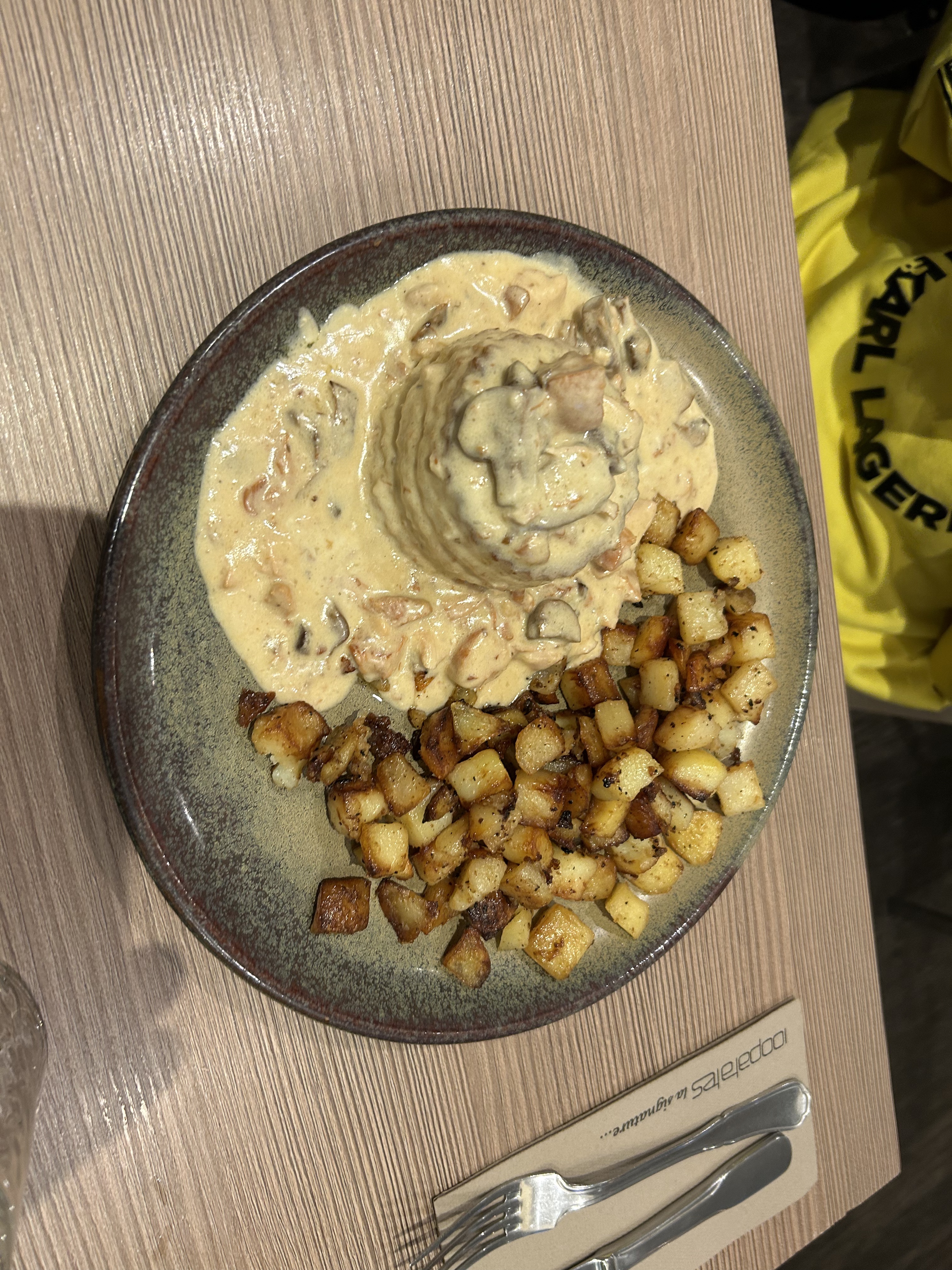 Die Kartoffelprodukte waren als Kern des Konzeptes doch arg durchschnittlich. Der Service freundlich, das Ambiente weniger schön. --- Les produits à base de pommes de terre, au cœur du concept, étaient tout de même très moyens. Le service était aimable, l'ambiance moins agréable.