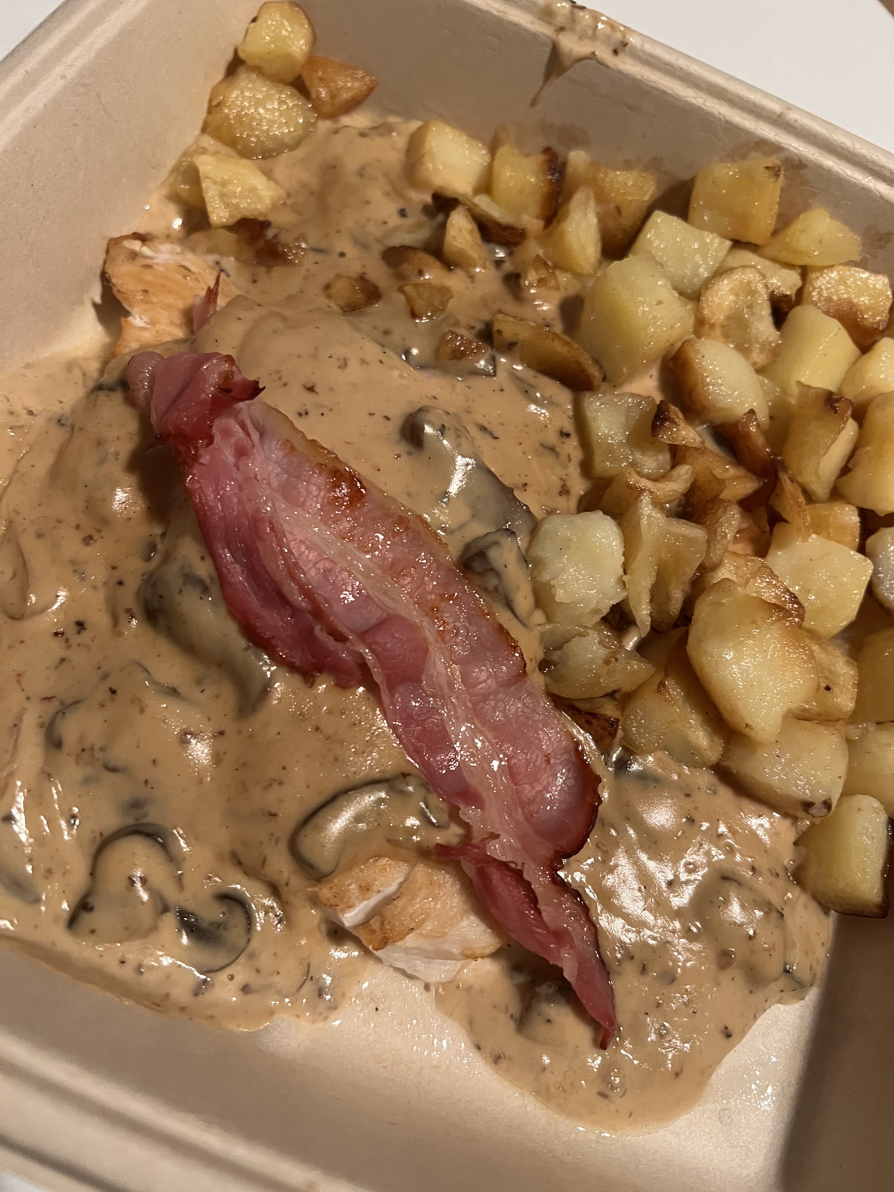 J’ai commandé deux fois chez 100 patates. J’ai adoré le cordon bleu du chef qui était tendre ainsi que les patates rôtis. La sauce champignon est extra. J’ai également déjà pris l’escalope de volaille montagnarde. Elle est très garnie. Je recommanderai avec plaisir ! Les plats sont très très bons.