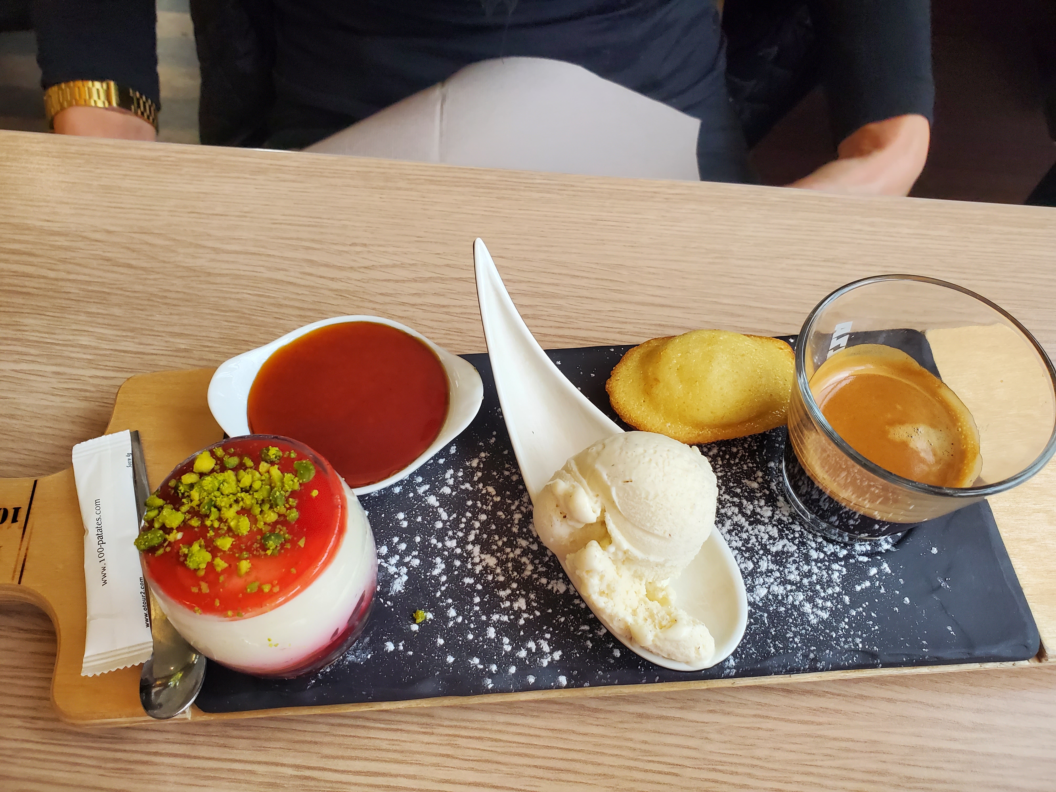 Rapide déjeuner sous les arbres à côté du jardin d'eau, comme un petit air de vacances. Nos salades et cordon bleu étaient bons, les pommes de terre rôties aussi mais cuites depuis un moment alors que nous étions les premiers clients. C'est dommage pour un resto centré sur la patate 😉. Mais je note bien car nous avons bien mangé tout de même et le service était nickel 👍