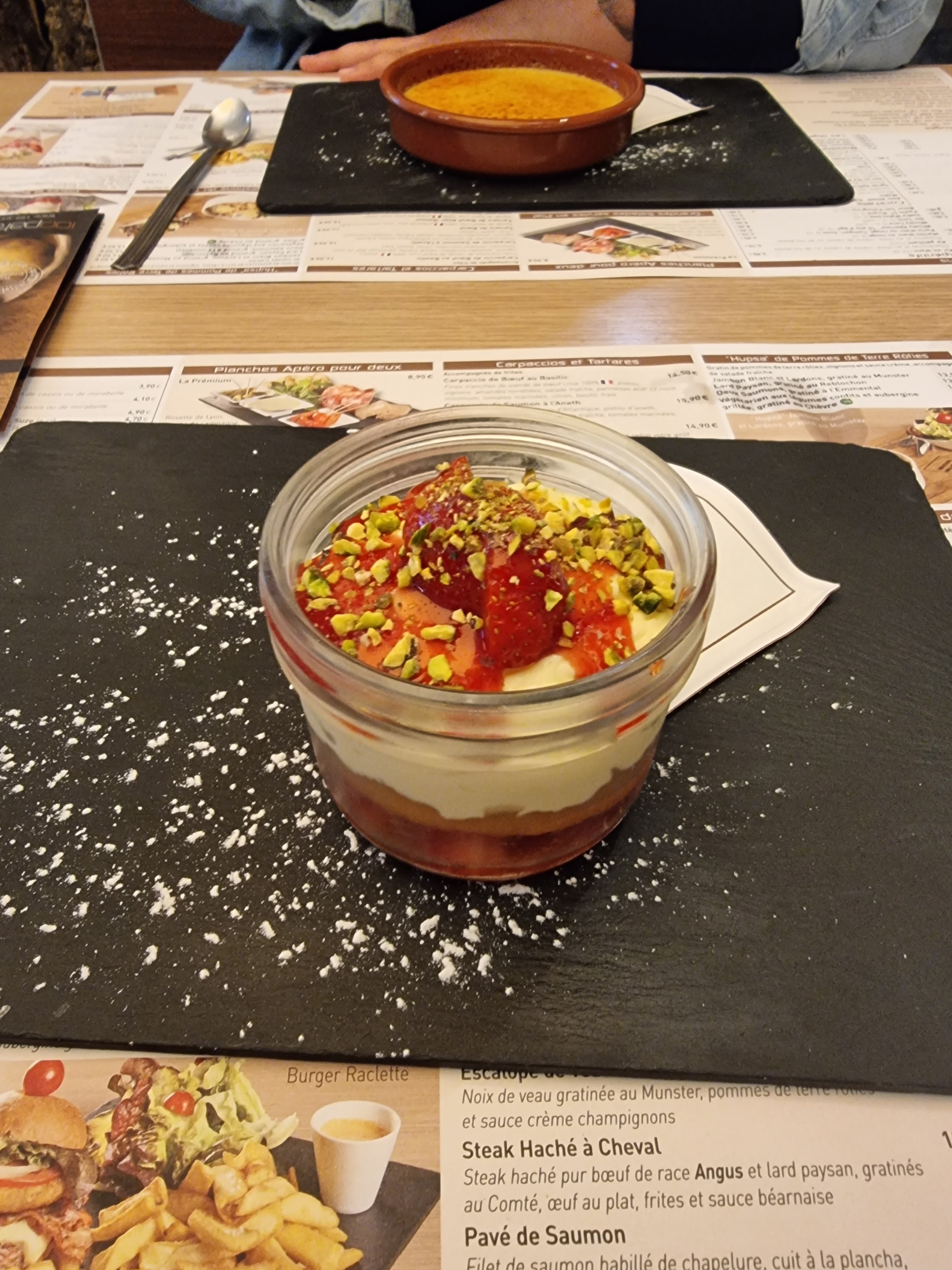 Accueil sympathique, personnel agréable, trop dur de choisir tout donne envie, j'ai tenté le gratiné raclette je n'ai pas été déçu !! Trop bon 🤤, le dessert idem très bon. Bon rapport qualité prix. Je recommande ++ et j'ai déjà hâte d'y retourner!!