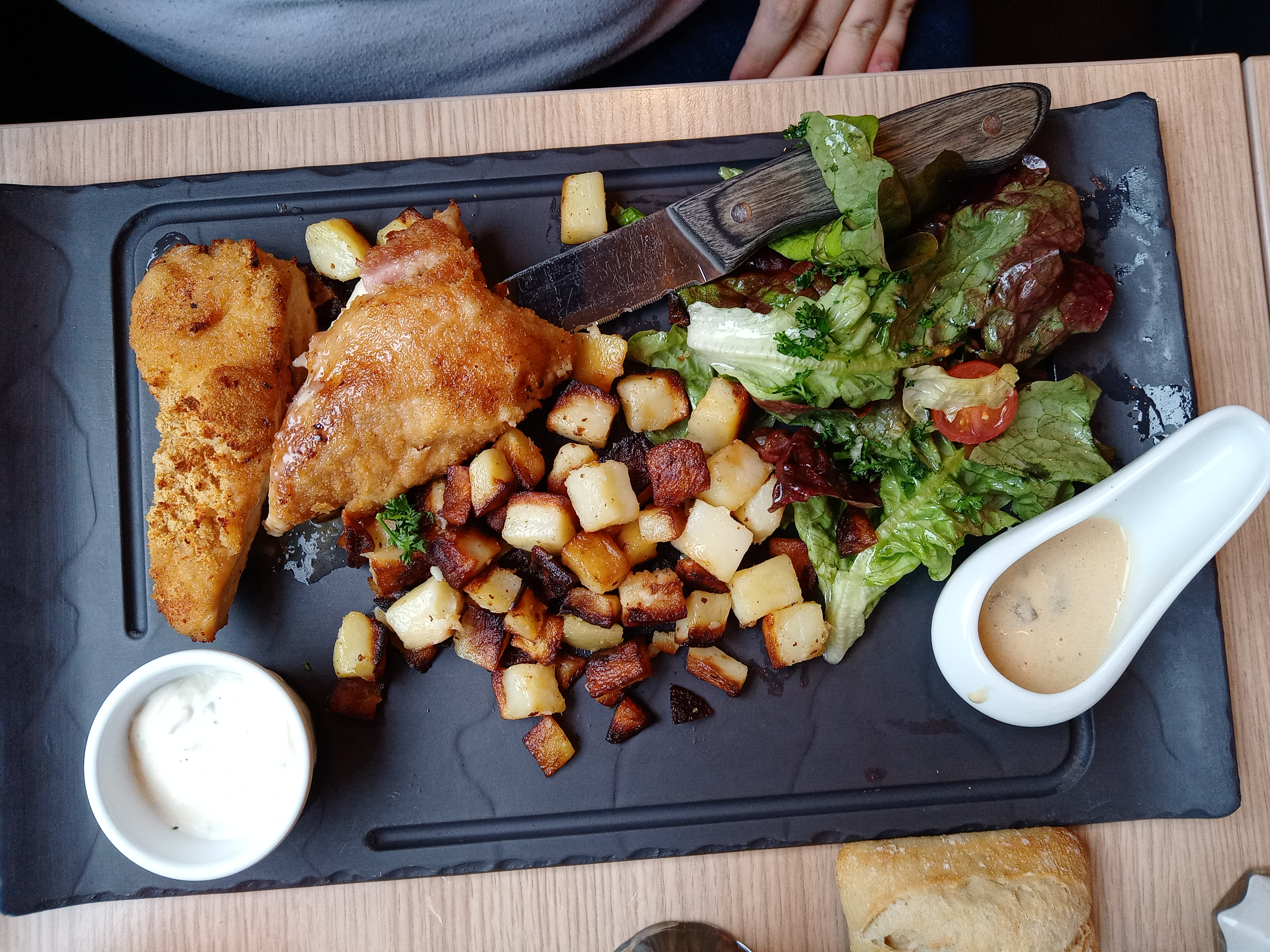 Le lieu est sympa. Je pense qu'il devait manquer de personnel car nous avons attendu pour être mis à table alors que des tables étaient disponible mais pas long à debarasser. On demande la carte des desserts, elle n'arrive pas tout comme le pain à payer en supplément pour de la fondue que j'ai attendu jusqu'à la fin de mon repas sans arriver.