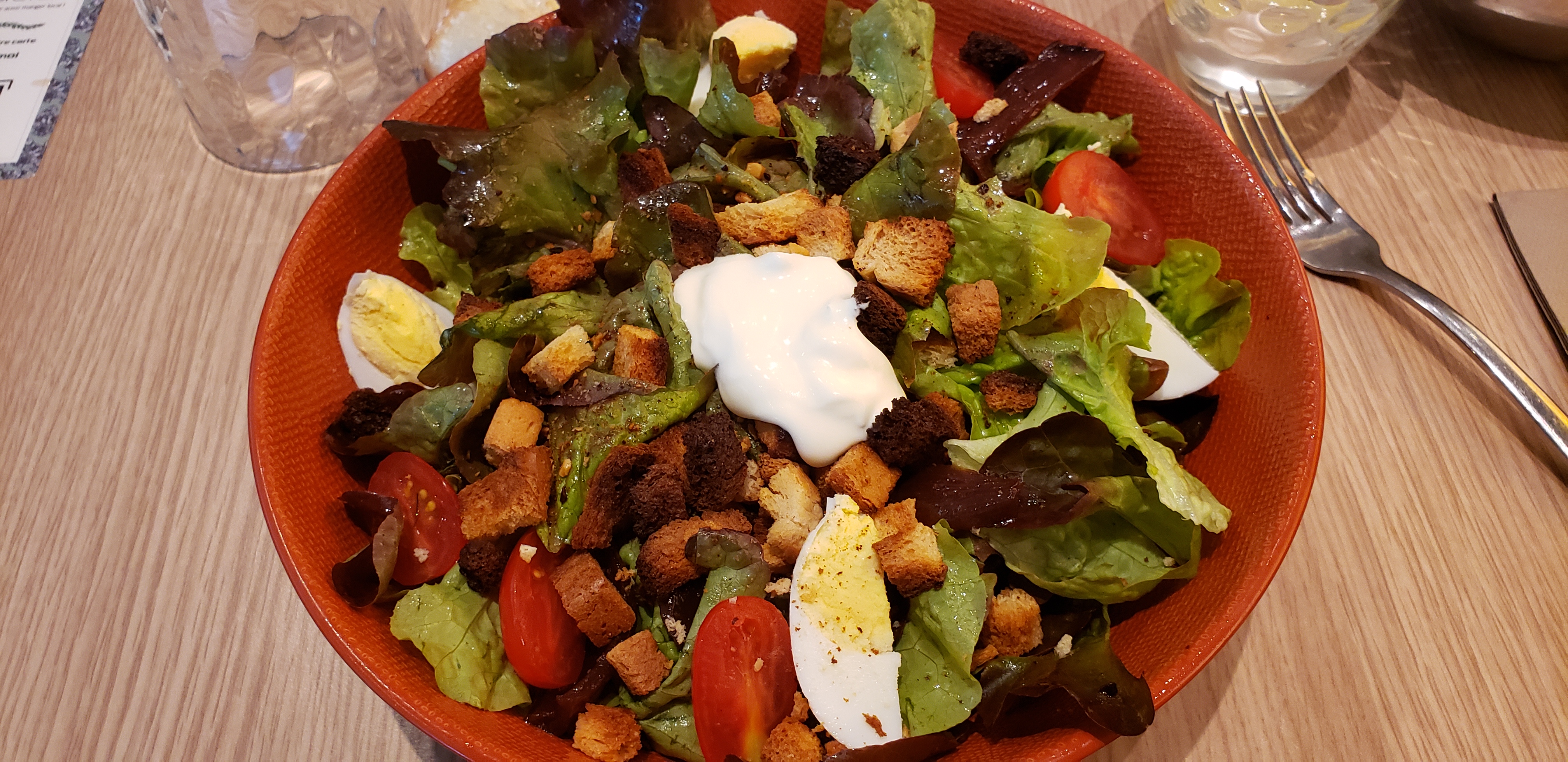 J'ai mangé dans un restaurant similaire le lendemain et je peux vous dire qu'il n'avait strictement rien à voir avec celui-ci ! Accueil et personnel très agréable malgré notre arrivée tardive, salade copieuse et délicieuse ! La crème brûlée tellement énorme que je n'ai pas réussi à la finir ! Nous reviendrons ! 😁
