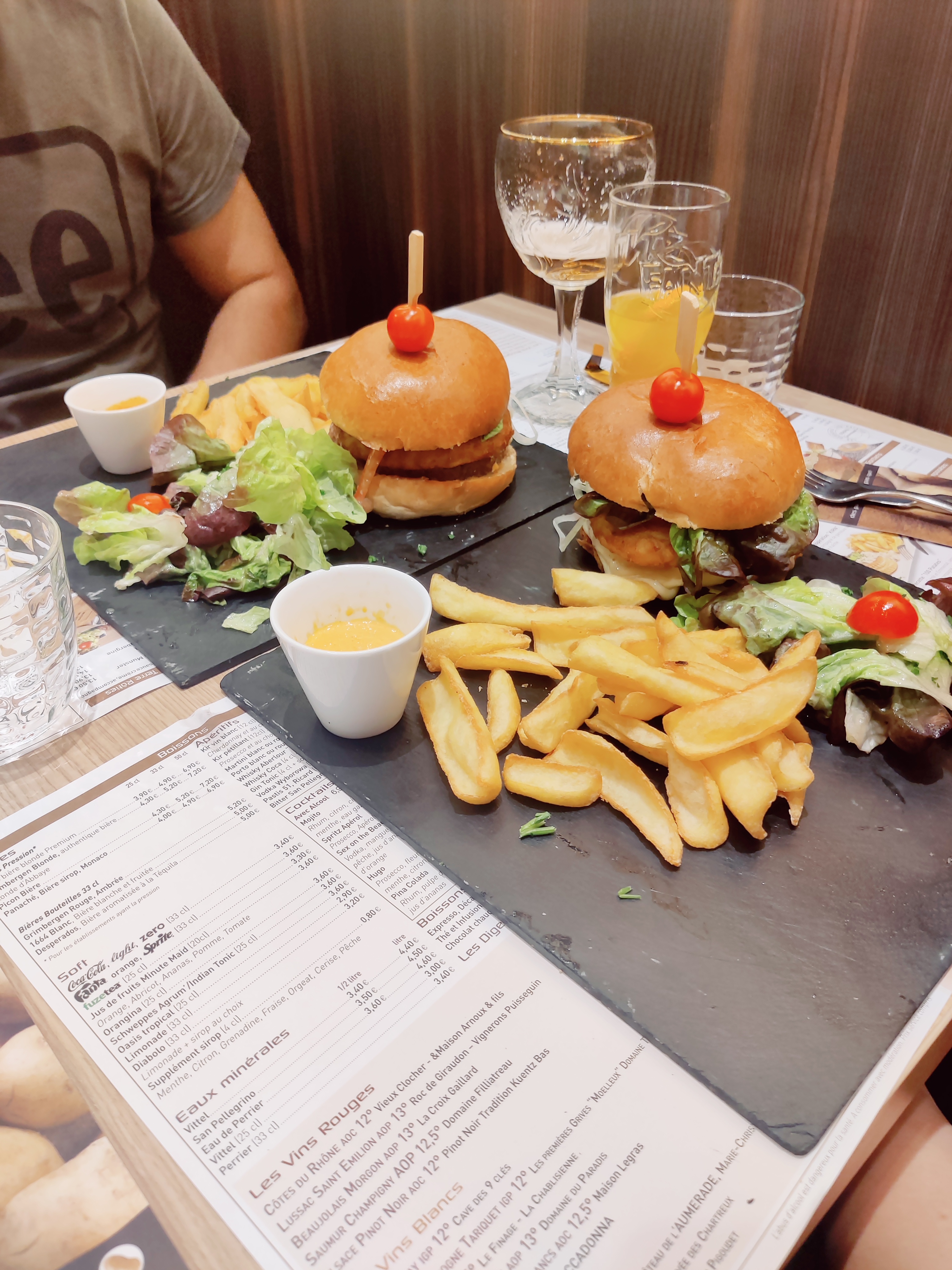 Un restaurant bien décoré à l'intérieur, la serveuse sympas, mais le repas copieux, le 1er un cocktail sans alcool virgin pena colada, 2ème un picon bière (excellent) 3ème afterwork ( rosette , cornichon , assortiment de fromage , fuseau de lorrain ) 4ème onglet de bœuf, 5ème tartiflette au 2 saumons , 6ème café gourmand , 7ème tiramisu fraise framboise . L'afterwork c'est copieux rien d'extraordinaire, onglet rien de spécial à part les frites fait maison , tartiflette rien à dire excellent , café gourmand la madeleine pas bonne , et tiramisu pas bon fraise framboise trop acidulée, je m'attendais à mieux .