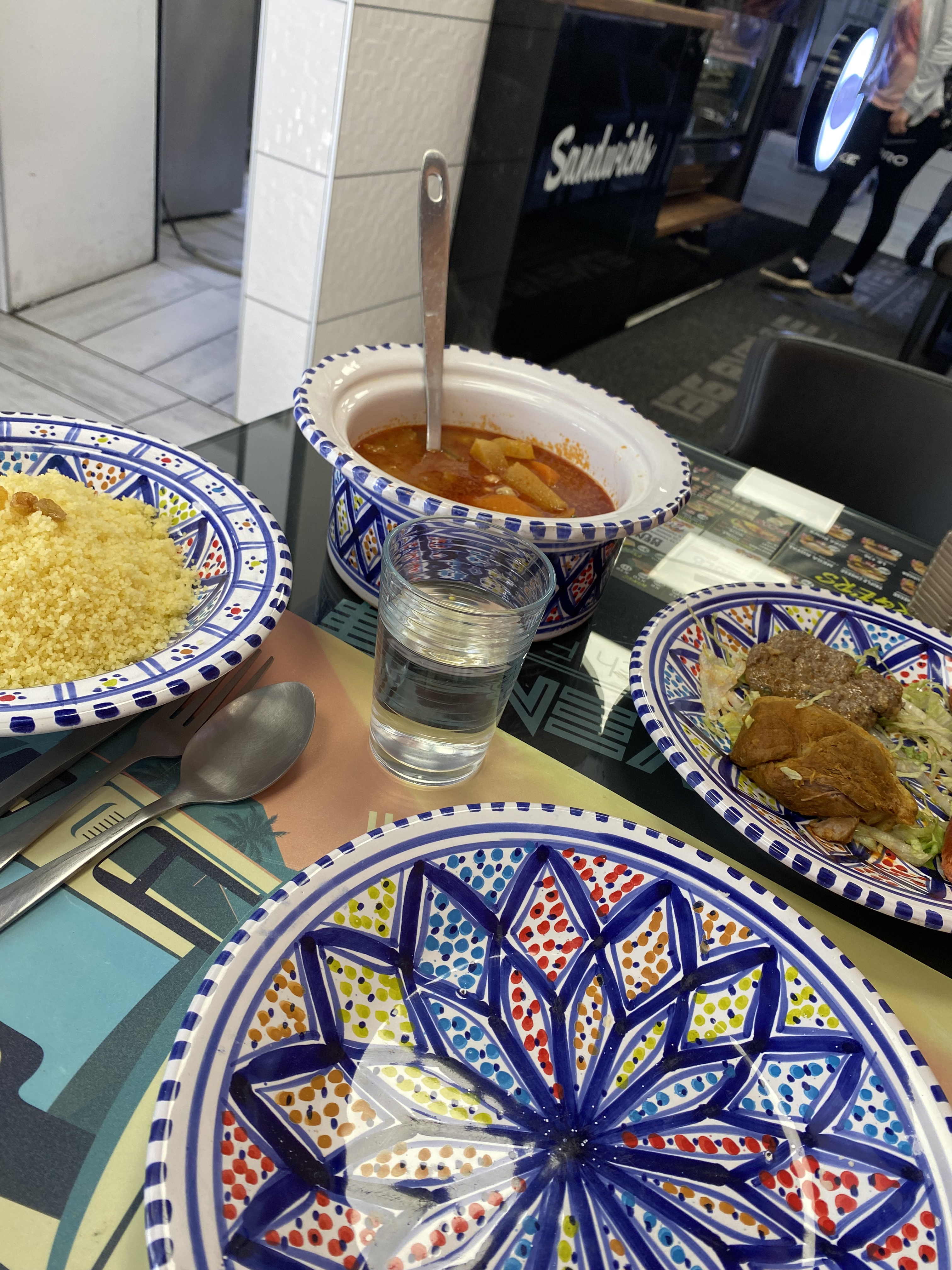 Personnel très sympathique et grand choix. Je recommande le couscous, surtout aux touristes. Cela pourrait être un peu plus propre, mais acceptable.