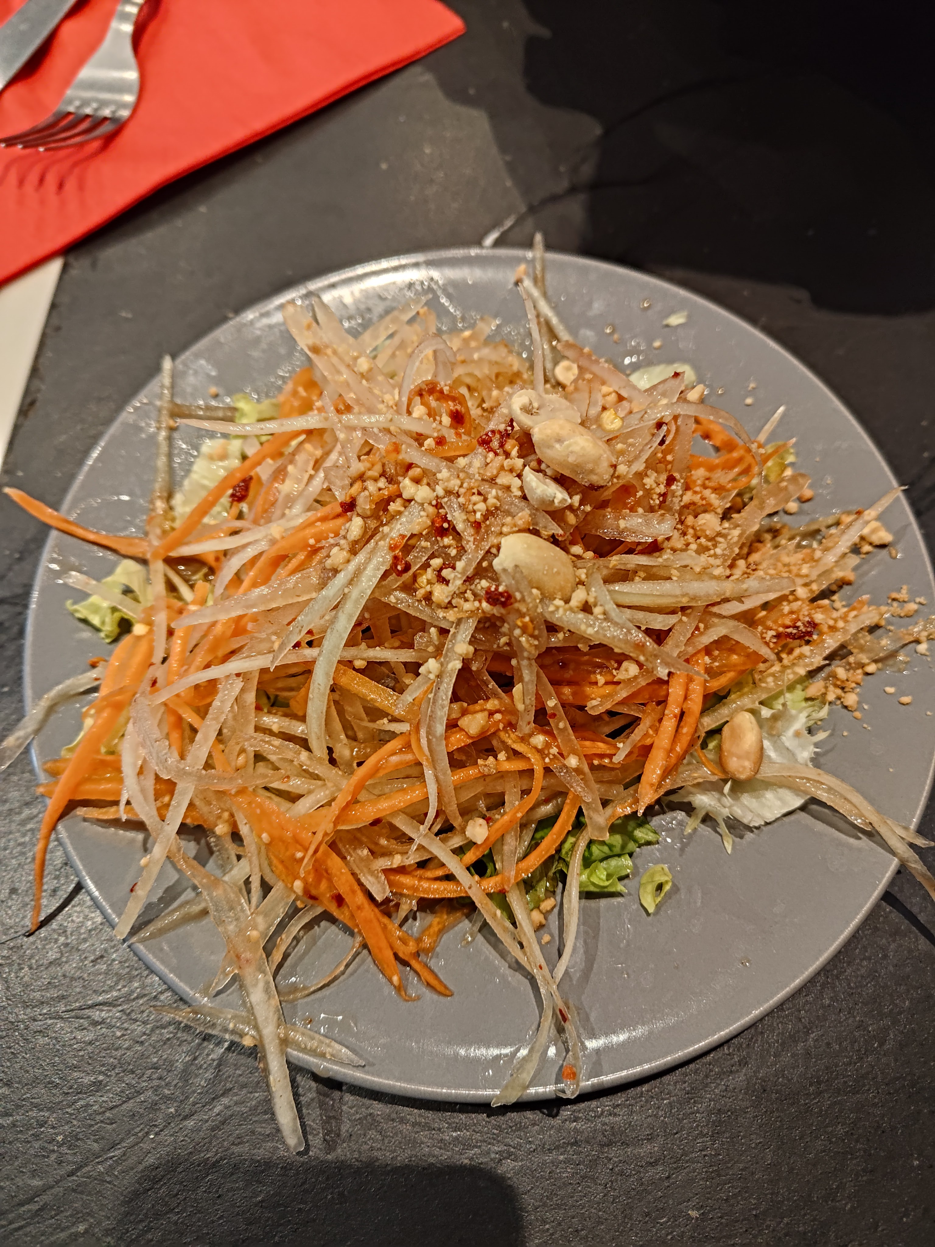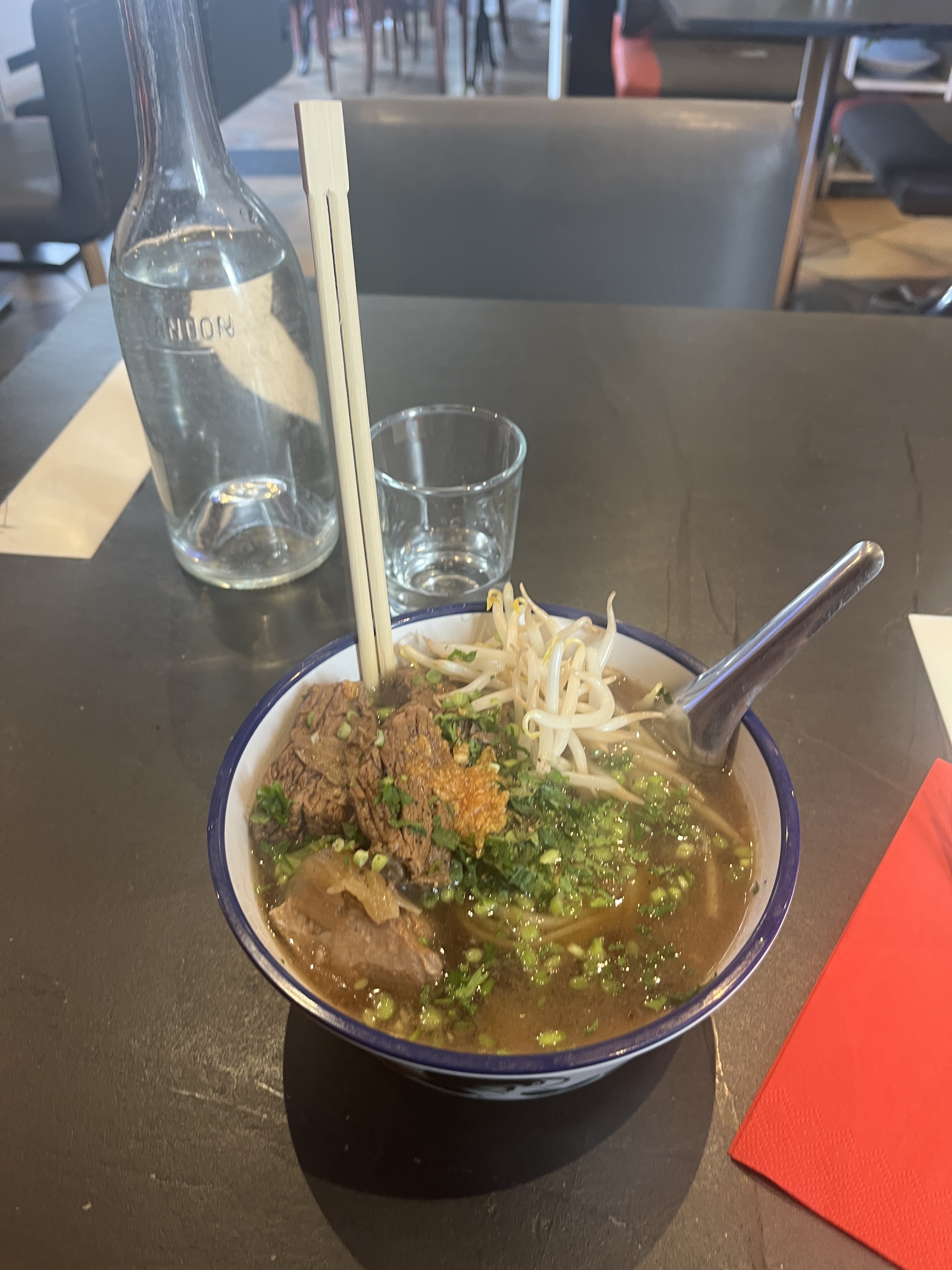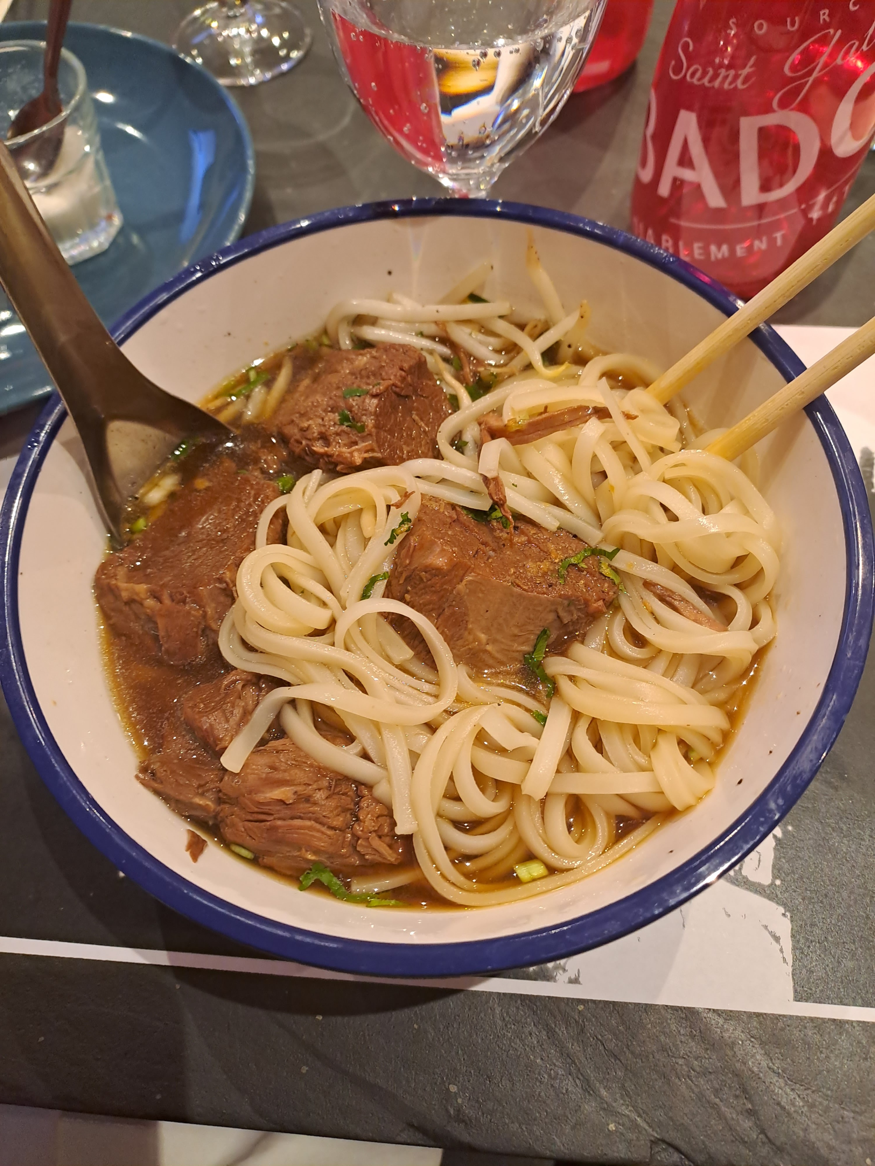 Serveuse très gentille. Par contre patron en cuisine déagréable et n’arrêtait pas de crier, on entendait tout. Il s’est engueulé avec une commis qui a quitté le restaurant énervé. Le pire est que le pad thaï était imengeable, cuisson des nouilles à l’eau et ensuite servi baigné dans une sauce, j’aurais cru mangé des pâtes au ketchup, le pire pad thaï de ma vie. Autre plat de nouilles servi avec du bœuf braisé. Les nouilles étaient croquantes donc pas assez cuites. Vraiment très décu. Heureusement la serveuse était d’une gentillesse, mais le repas valait vraiment zéro. Sur mes 4 plats on n’a quasiment rien mangé de l’assiette. Dommage…