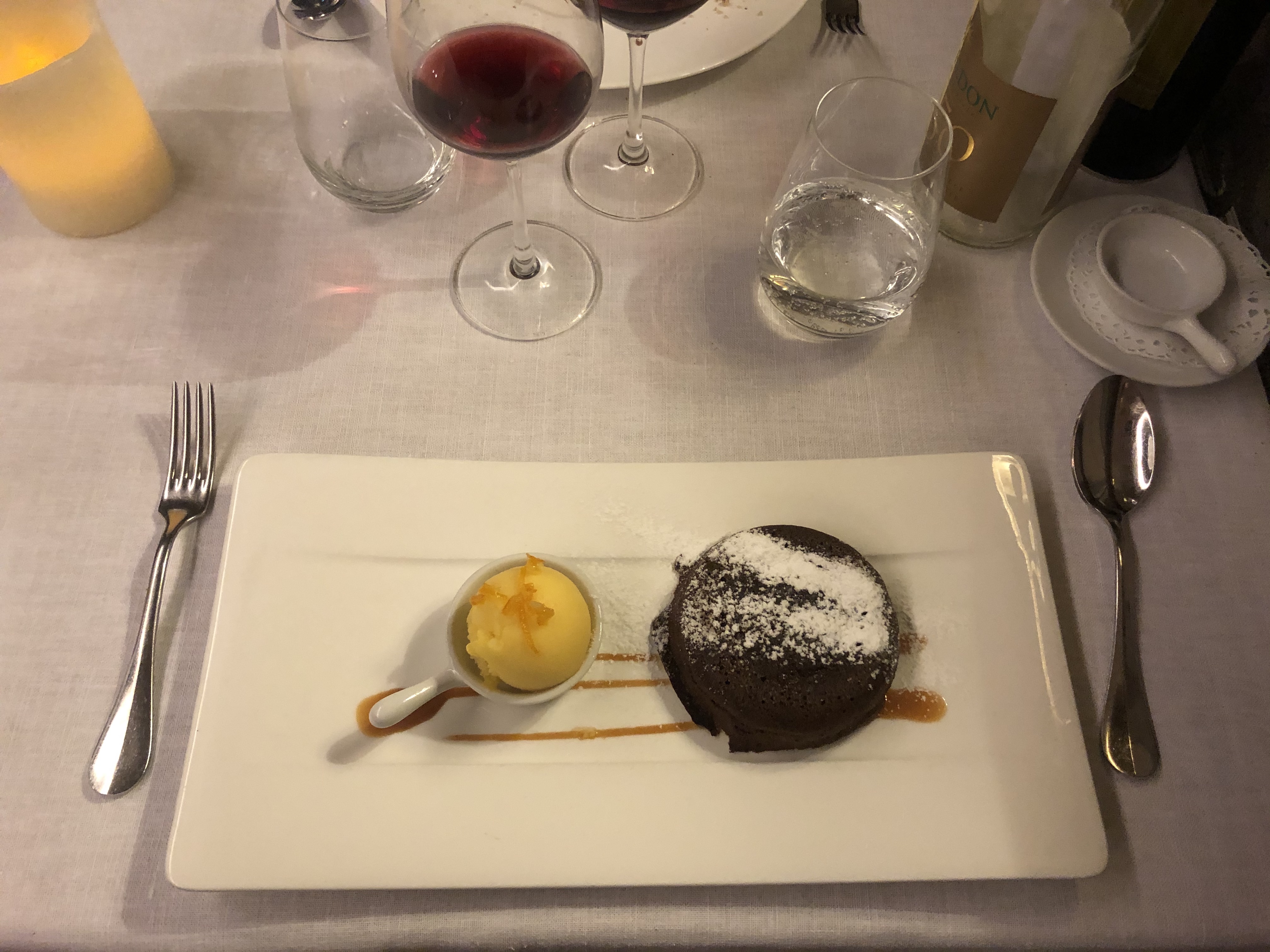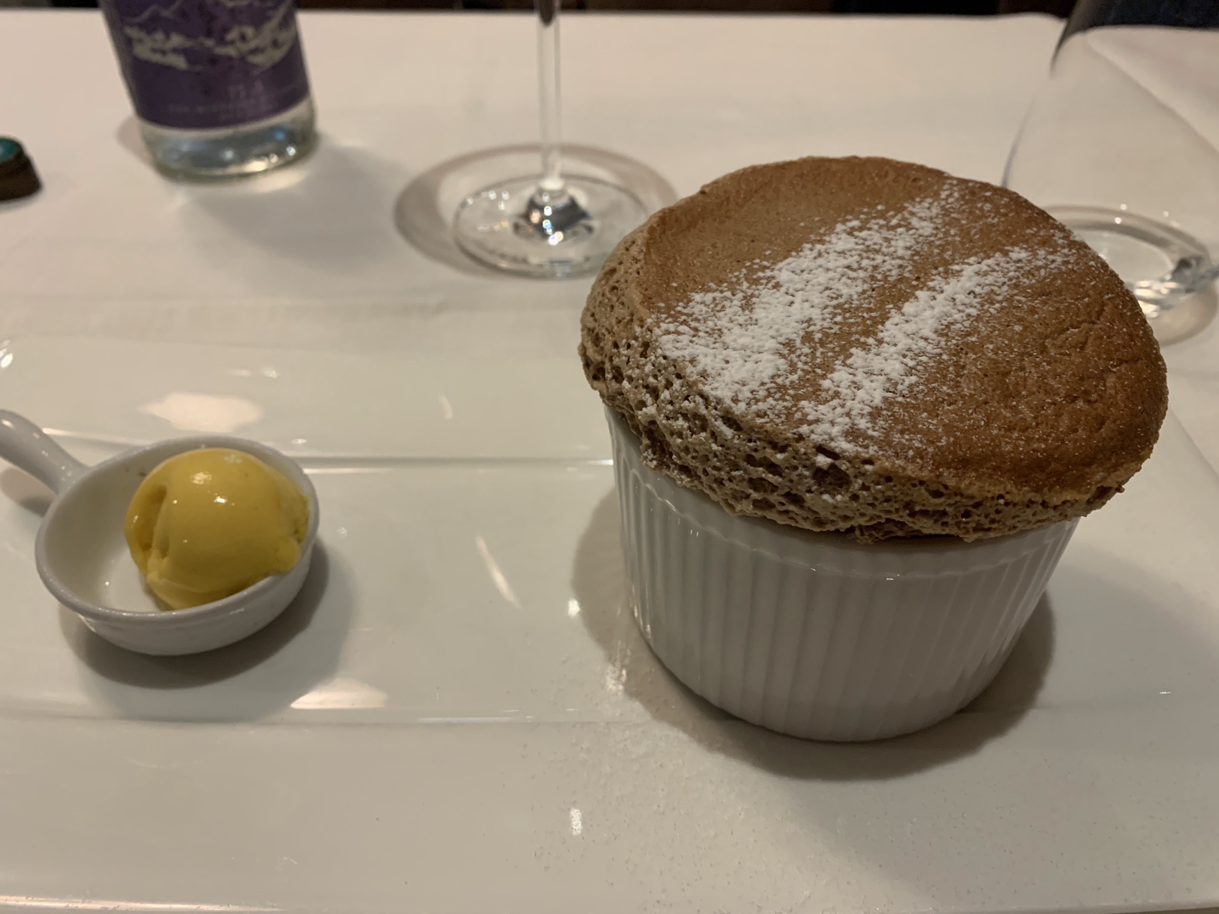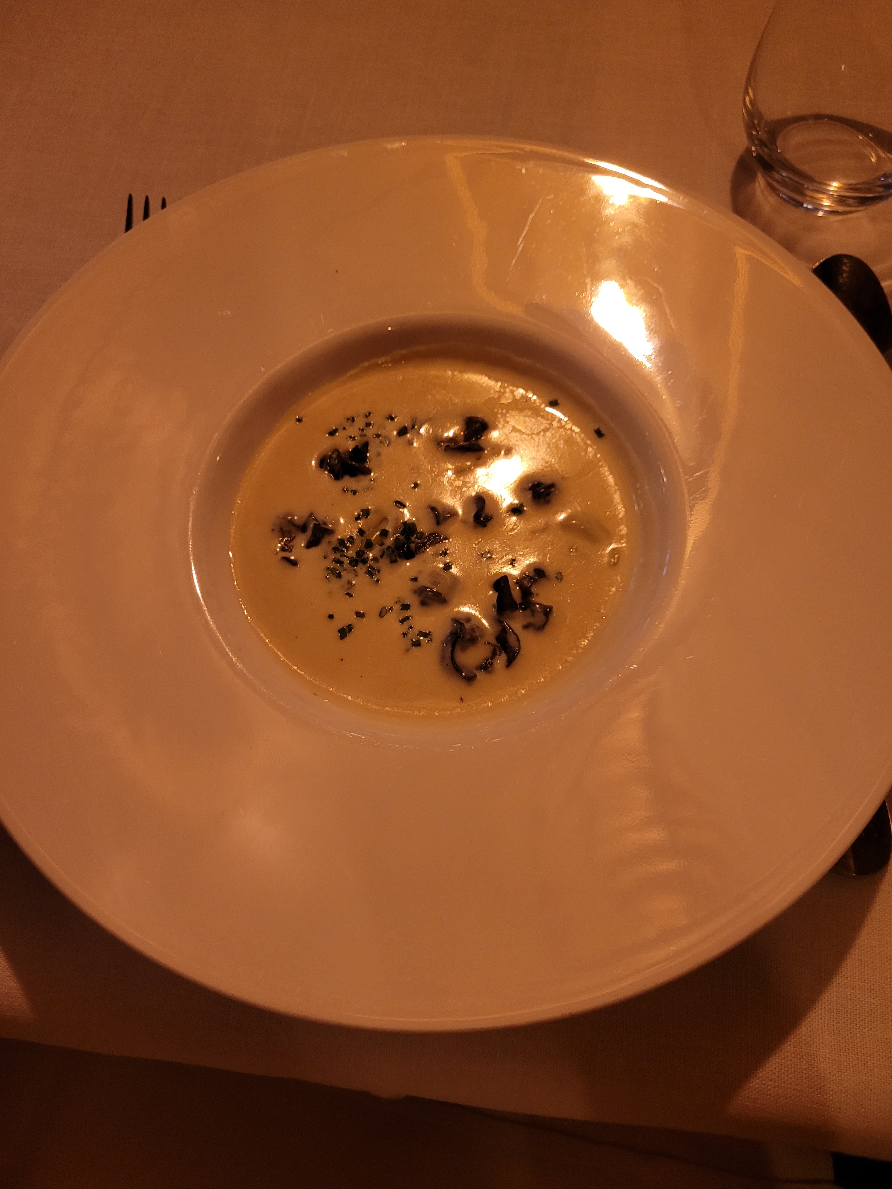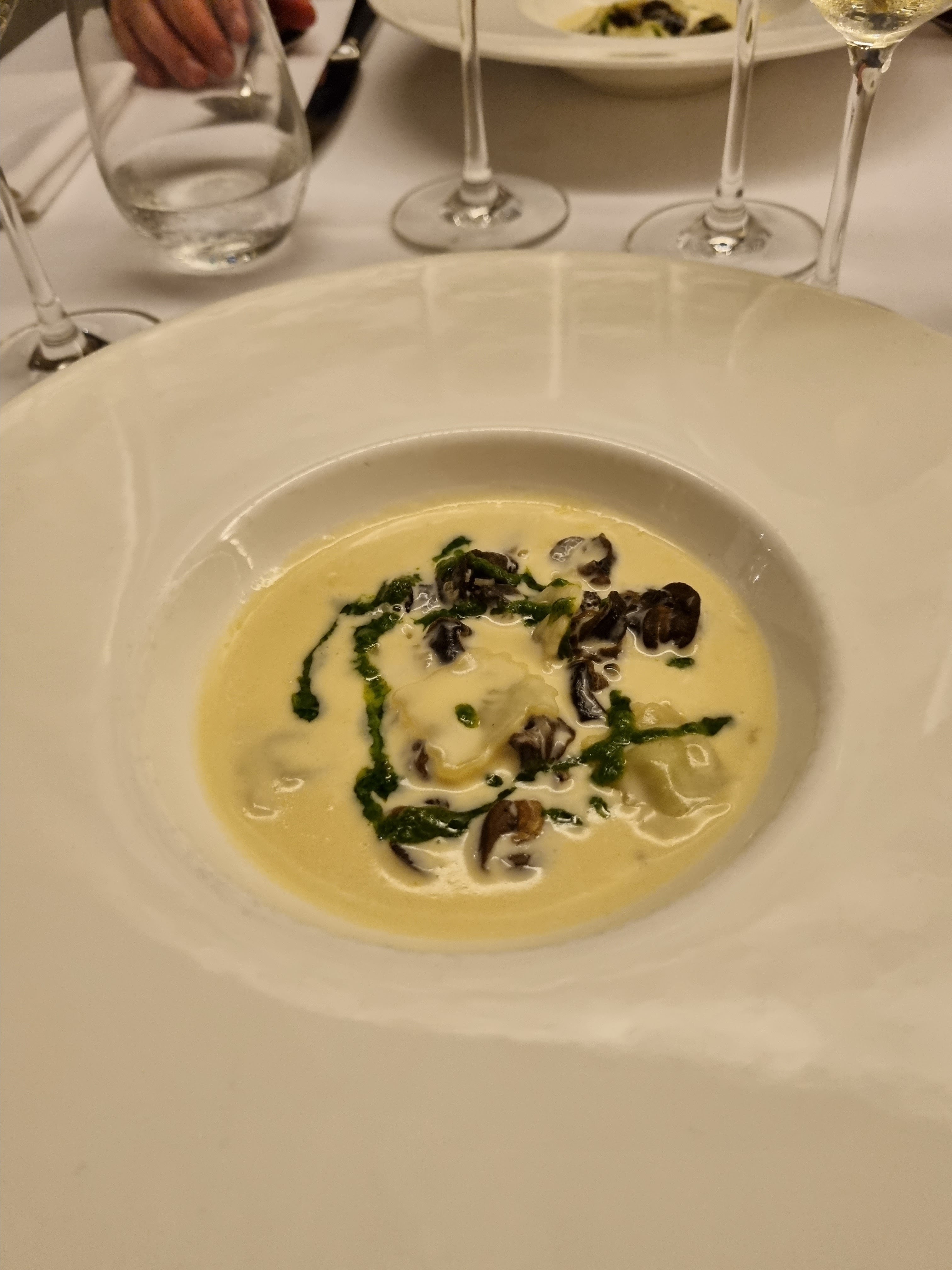 Ma femme et moi étions ici pour un bon repas en visitant la région. La nourriture était très bonne et l'environnement était tout aussi agréable. Malheureusement, ce soir-là, il y avait un groupe géant au restaurant qui dominait les serveurs et nous laissait plutôt négligés. Normalement, cela serait acceptable, mais pour un restaurant qui commande plus de 100 € par repas, ce genre de chose ne devrait pas arriver.
