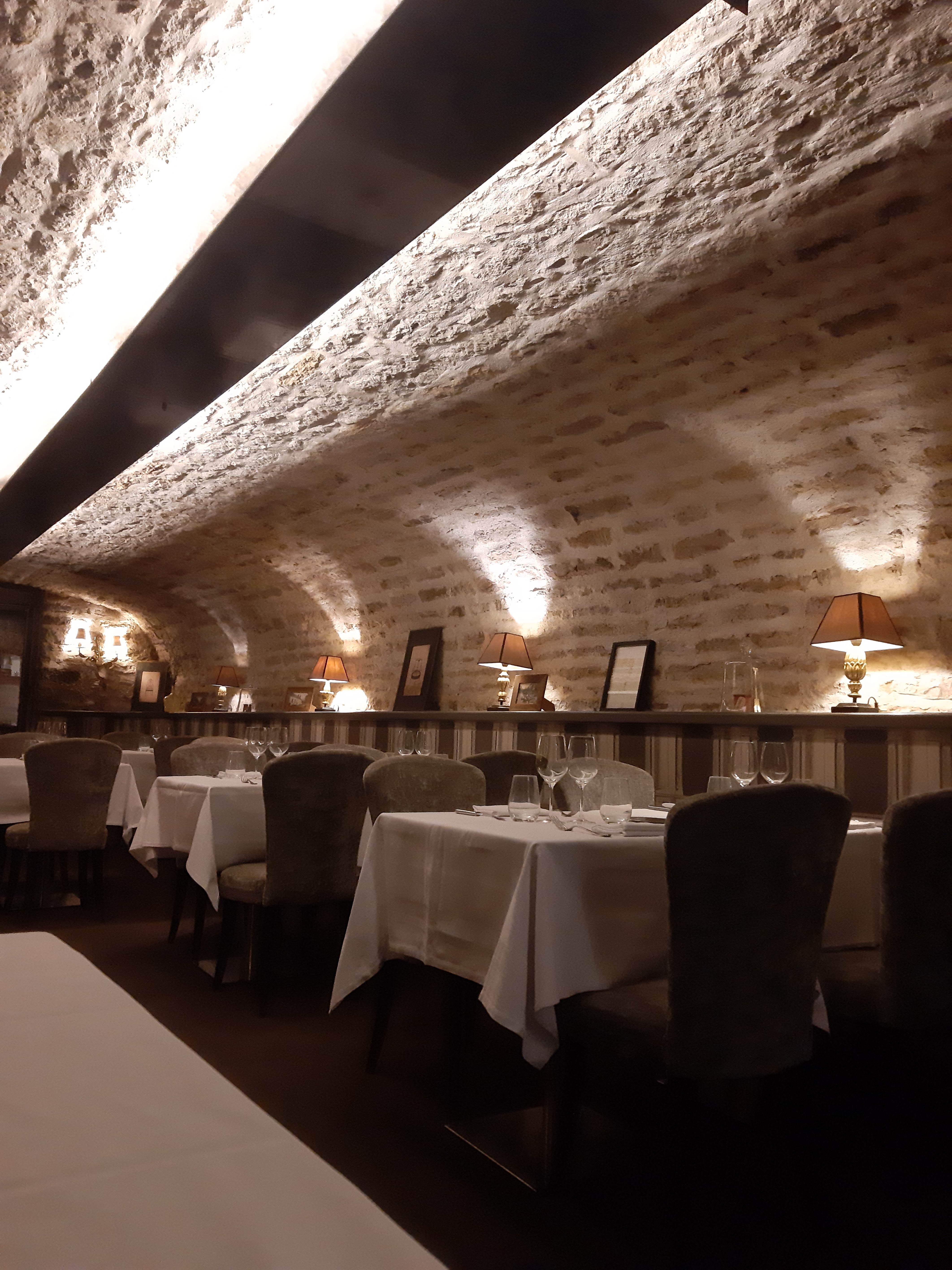 Superbe salle dans une cave voûtée. Service parfait. La cuisine aurait pu être top car la préparation et la qualité des assiettes est au rendez-vous mais des plats chauds qui ne le sont pas assez. Un rapport qualité prix un peu élevé.