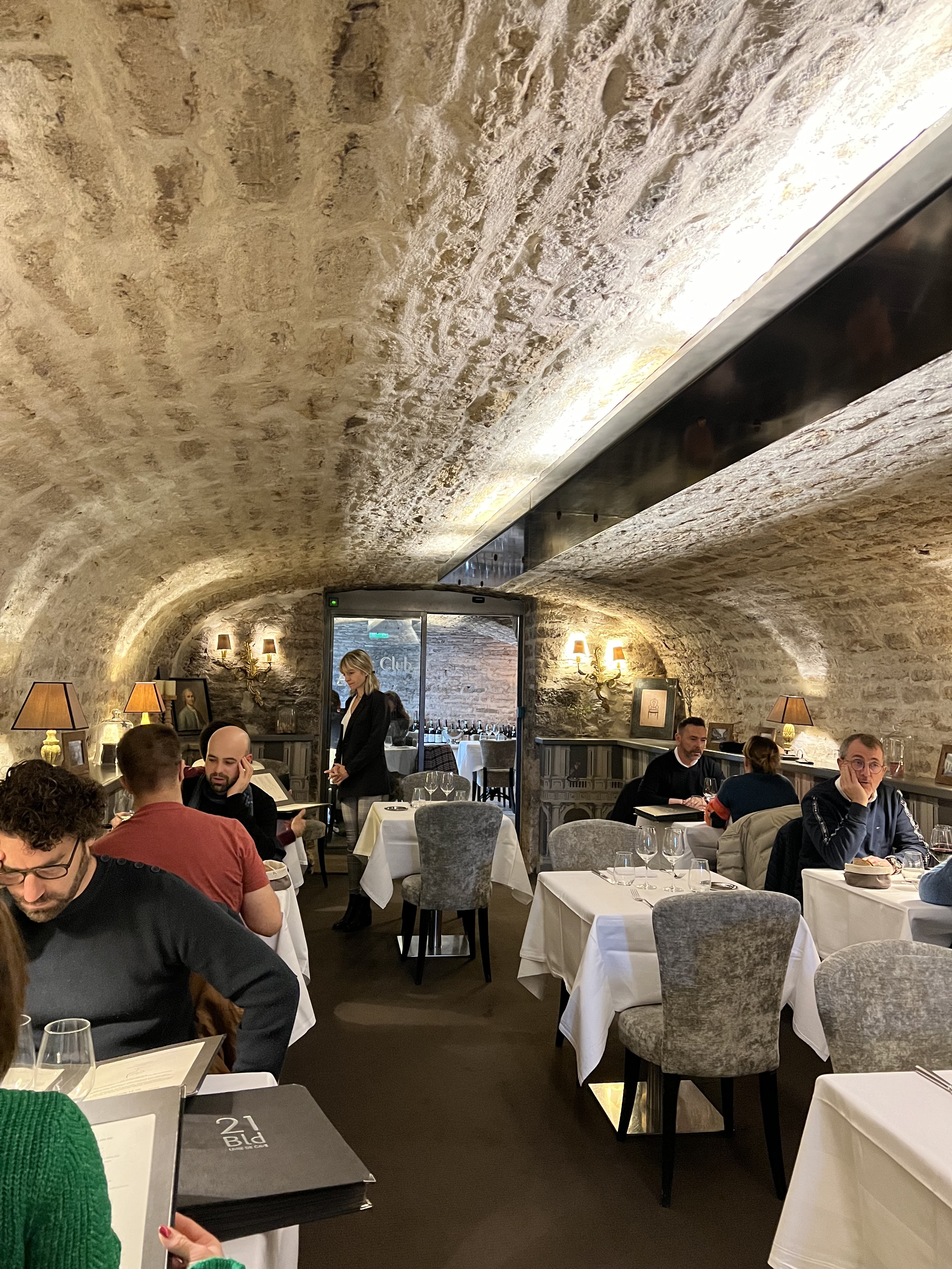 Cadre magnifique au sein d'anciennes caves voûtées datant du XVème siècle. Ambiance et service charmants - très tolérants envers notre manque de compétence avec la belle langue française. Menu anglais disponible. Nourriture incroyable et superbe bouteille de vin recommandée pour nos repas (beaucoup de choix). Je suis tellement content d'avoir visité.