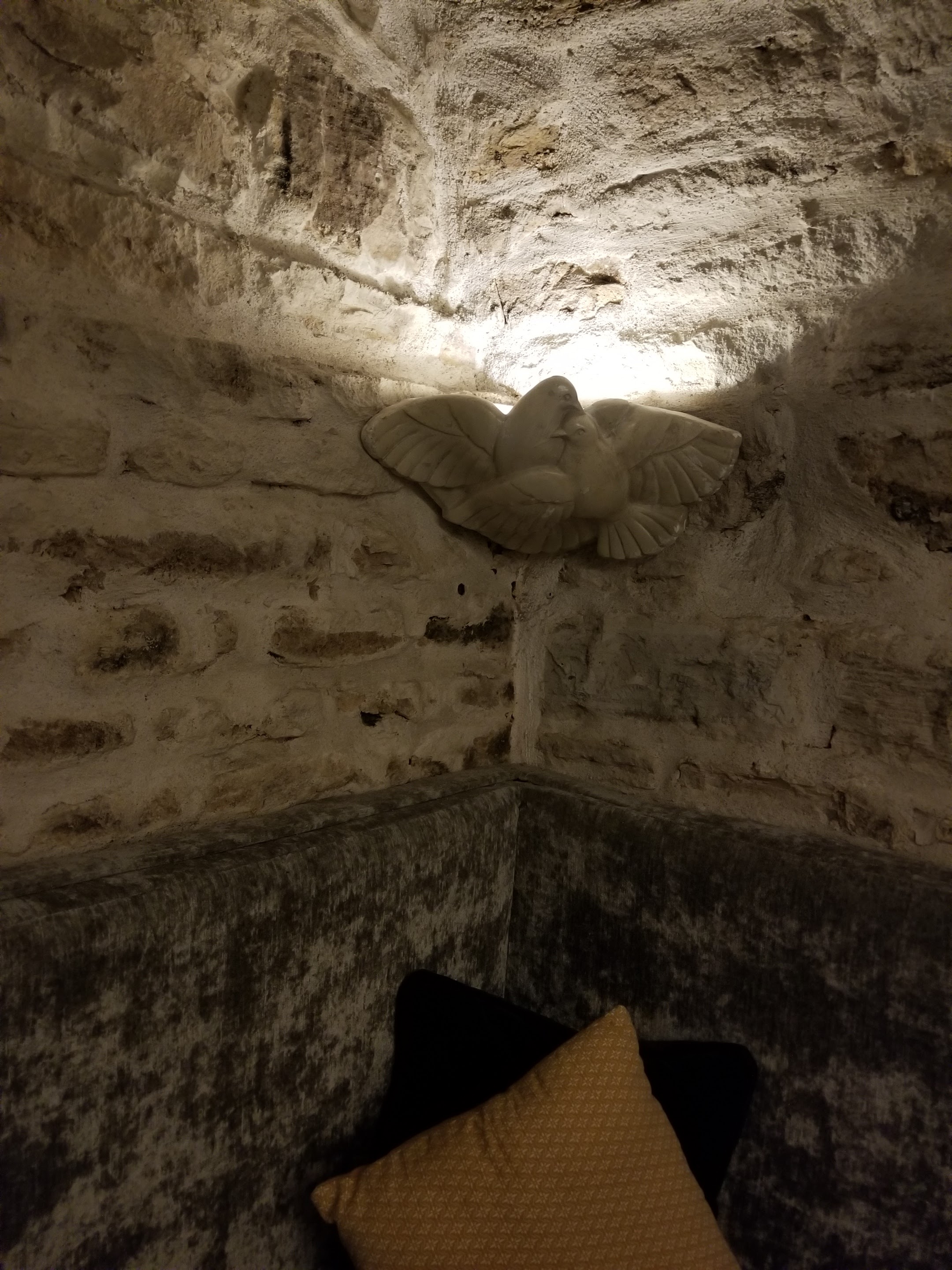 Nous sommes allés au dîner spécial de la Saint-Valentin qu'ils organisaient et l'ambiance était très agréable. La salle à manger semble être une ancienne cave ou grotte, car elle était en pierre avec des plafonds bas et voûtés. Le personnel était très poli, décrivant même les plats en anglais pour nous. Grand livre de vins parmi lesquels choisir également. La nourriture ne nous a pas époustouflé, mais elle était certainement bonne.