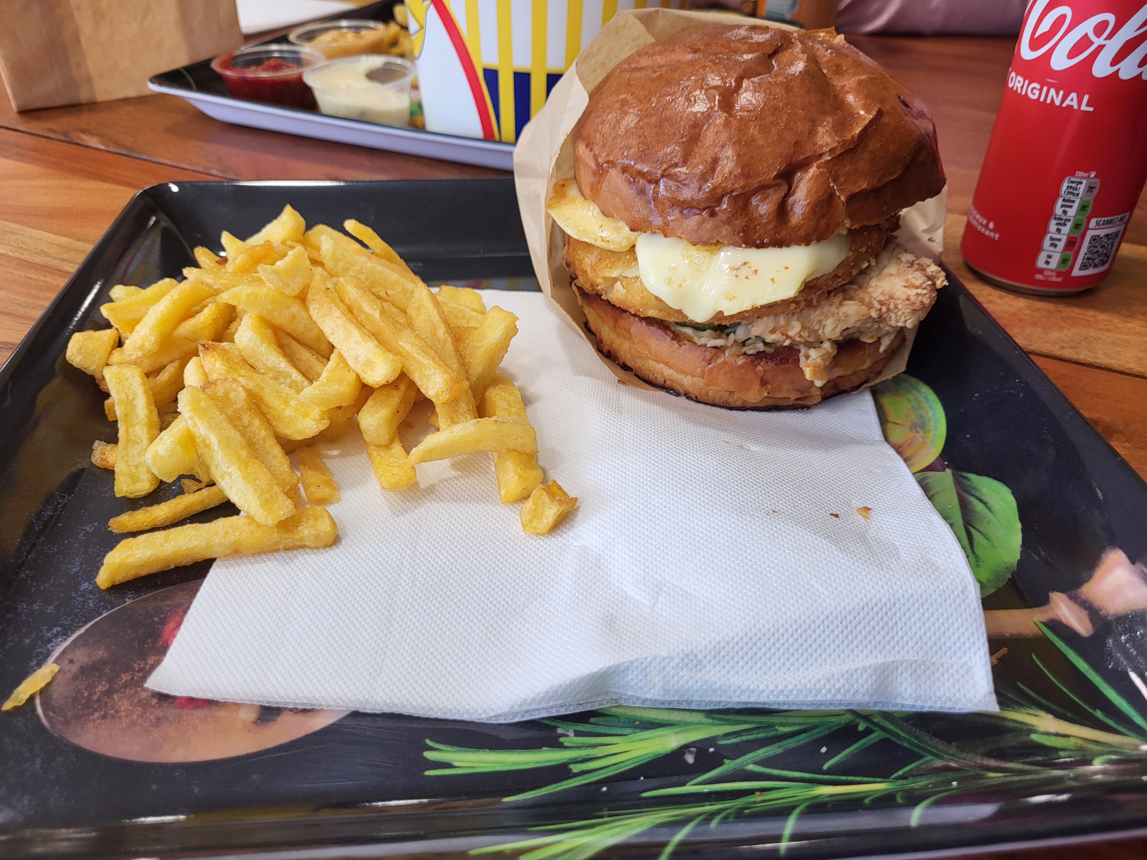 Deuxième expérience en 1 semaine, les burgers sont juste incroyables, les morceaux de poulet sont énormes, le goût est juste délicieux, les sauces faites maison et les frites faites maisons sont extras, vous commandez 1 burger en menu avec frites boisson ça vous coûte 12€ et vous êtes blindés, pas besoin de 3 burgers comme au McDo, sincèrement gros chapeau parce que vous proposez de très belles choses !