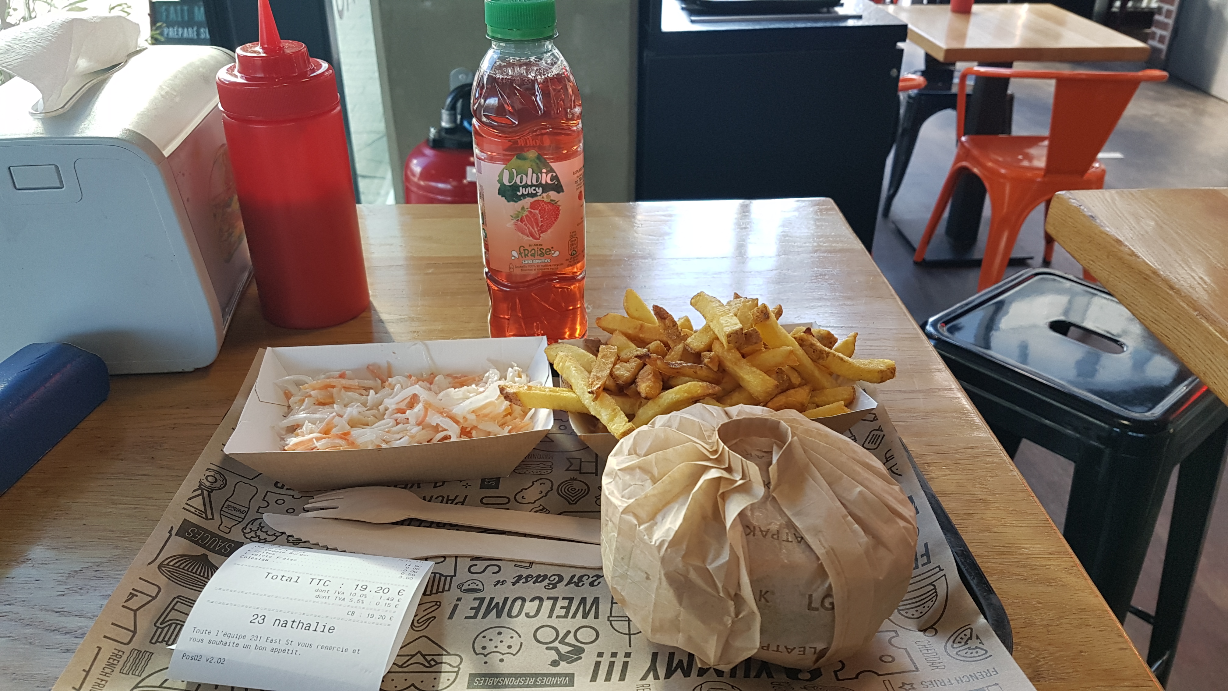 J'ai pris un menu complet à emporter( Hamburger, frites, boissons, dessert) Les frites maisons sont très bonnes mais pas assez de frites. Le hamburger pareil très bon mais trop petit. Ainsi que la part de cheescake également trop petite. En résumé c'est un bon endroit avec une bonne ambiance mais le prix est beaucoup beaucoup trop élever (18.90€) pour un simple menu avec dessert