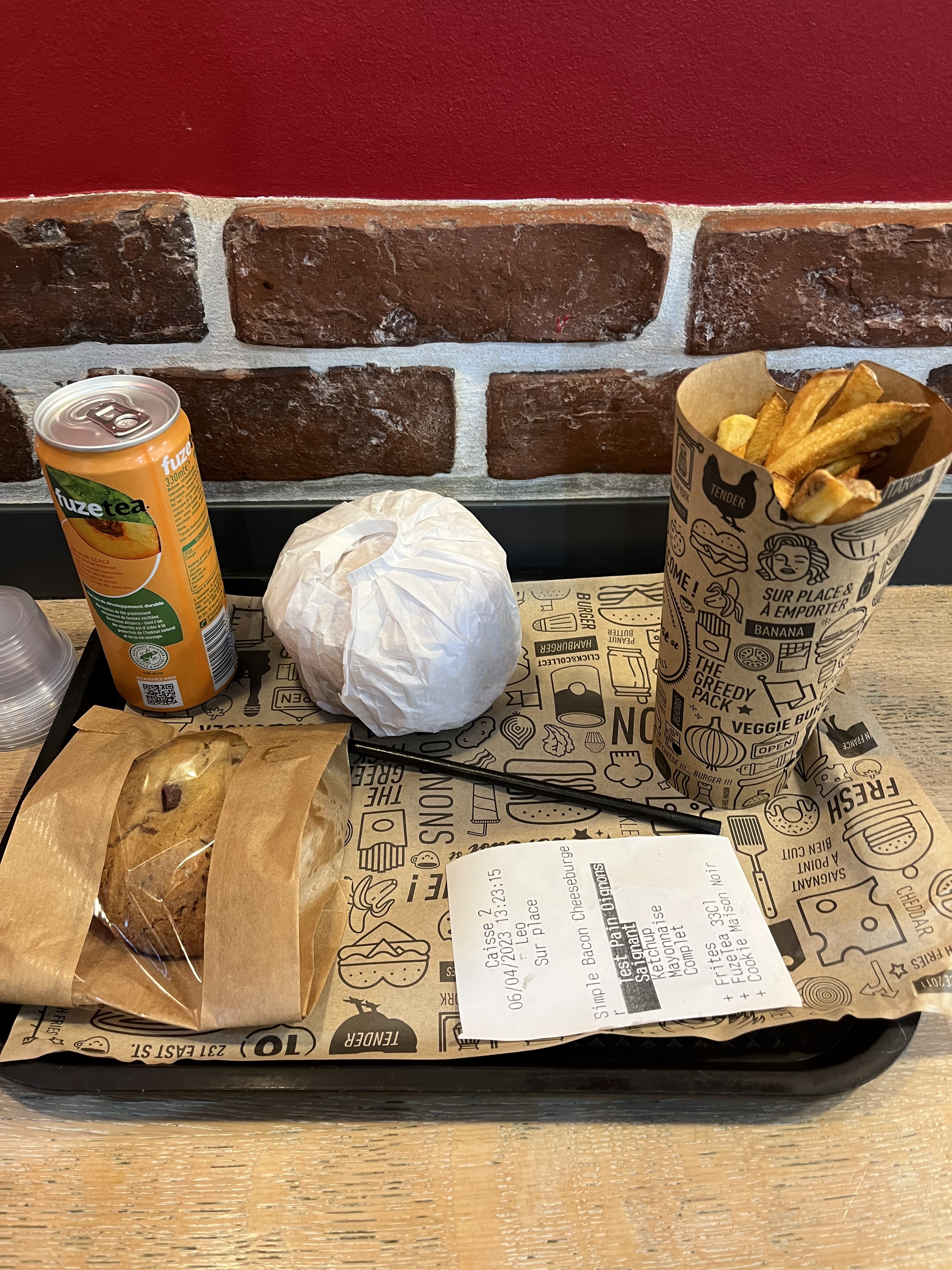 Frites un peu trop salées, bun un peu trop fin si vous prenez double steak, mais sinon c'était correct, copieux (pour le double steak bacon) et accessible niveau prix.