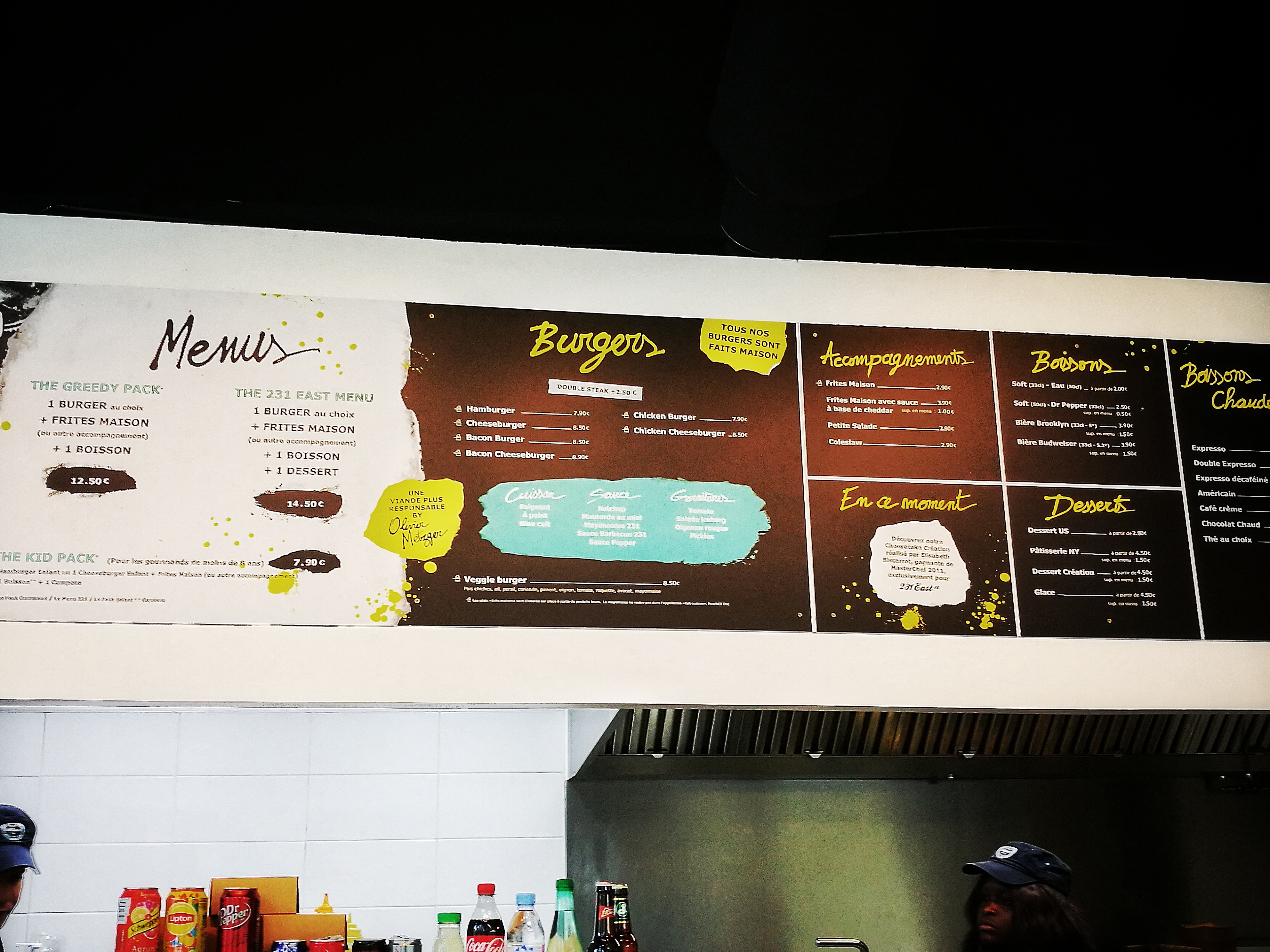 Situé proche de la Gare Saint-Lazare 231 east burger est un petit restaurant de burger qui a son charme, entre les différentes œuvres encadrés et les murs de brique, nous sommes dépaysés. Le restaurateur qui m’a pris ma commande a le goût de la relation. C’est un vrai boute-en-train, tout en sachant être professionnel quand il le faut. C’était vraiment plaisant. Les produits étaient vraiment tous très appétissant, un pain moelleux, des frites croustillantes, les produits sont frais sans l’ombre d’un doute. Je vous recommande un p’tit craquage dans ce restaurant vous ne serez pas déçu 🤌🏼