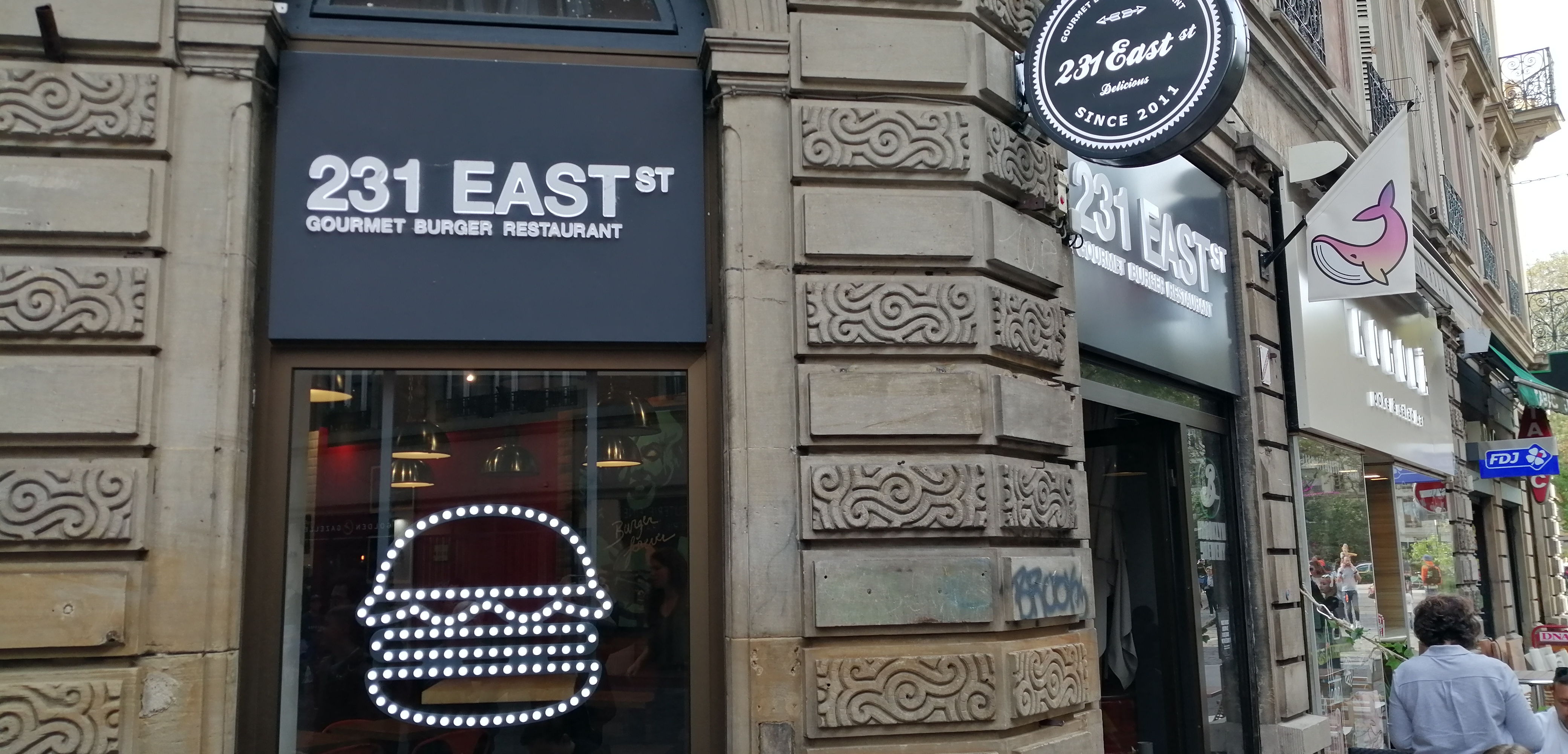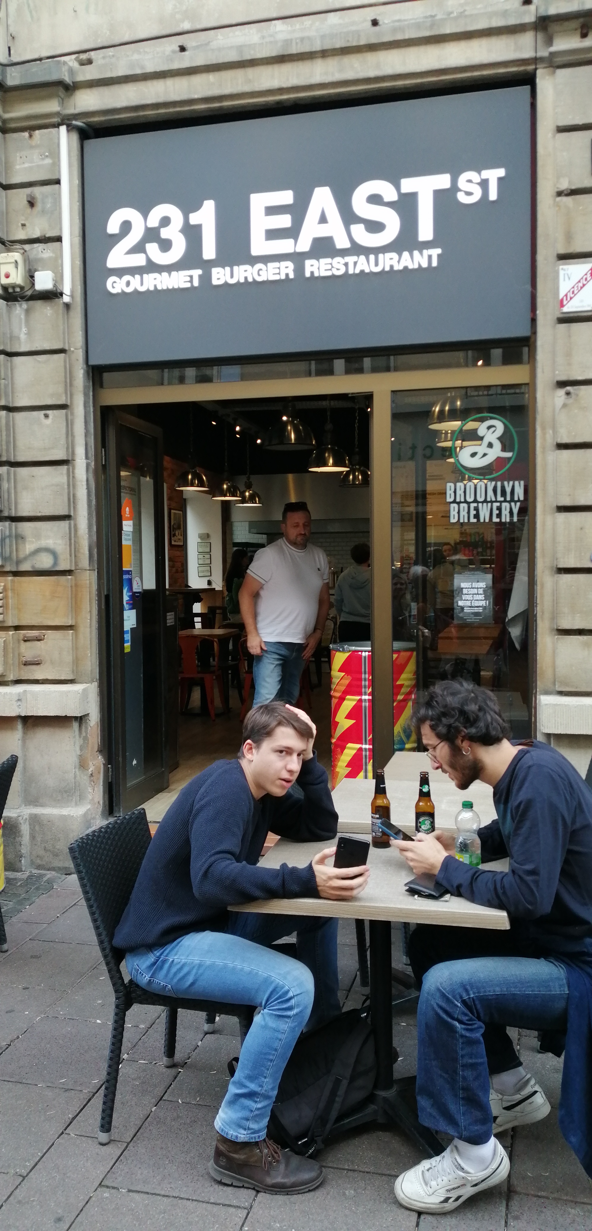 Je n'étais pas allée au 231 East depuis un moment, je trouvais que les burgers étaient devenus trop gras/baignants dans la sauce. Ce qui reste encore le cas je trouve. J'y suis retournée ce soir prendre à emporter. J'ai pris et payé un menu, et arrivée chez moi j'ai été très déçue de constater qu'on avait oublié mes frites... Pourtant on avait bien pensé à mettre les sauces dans le sachet... J'ai voulu appeler et le numéro du restaurant Austerlitz n'est pas sur internet ! À 10min de la fermeture, ça ne servait à rien que je revienne... Un oubli, cela peut arriver, mais de ce que je lis sur les autres avis, apparemment c'est habituel. Dommage... Mais ce n'est pas grave, on ne manque pas d'enseignes pour manger de bons burgers à Strasbourg avec un service plus qualitatif.