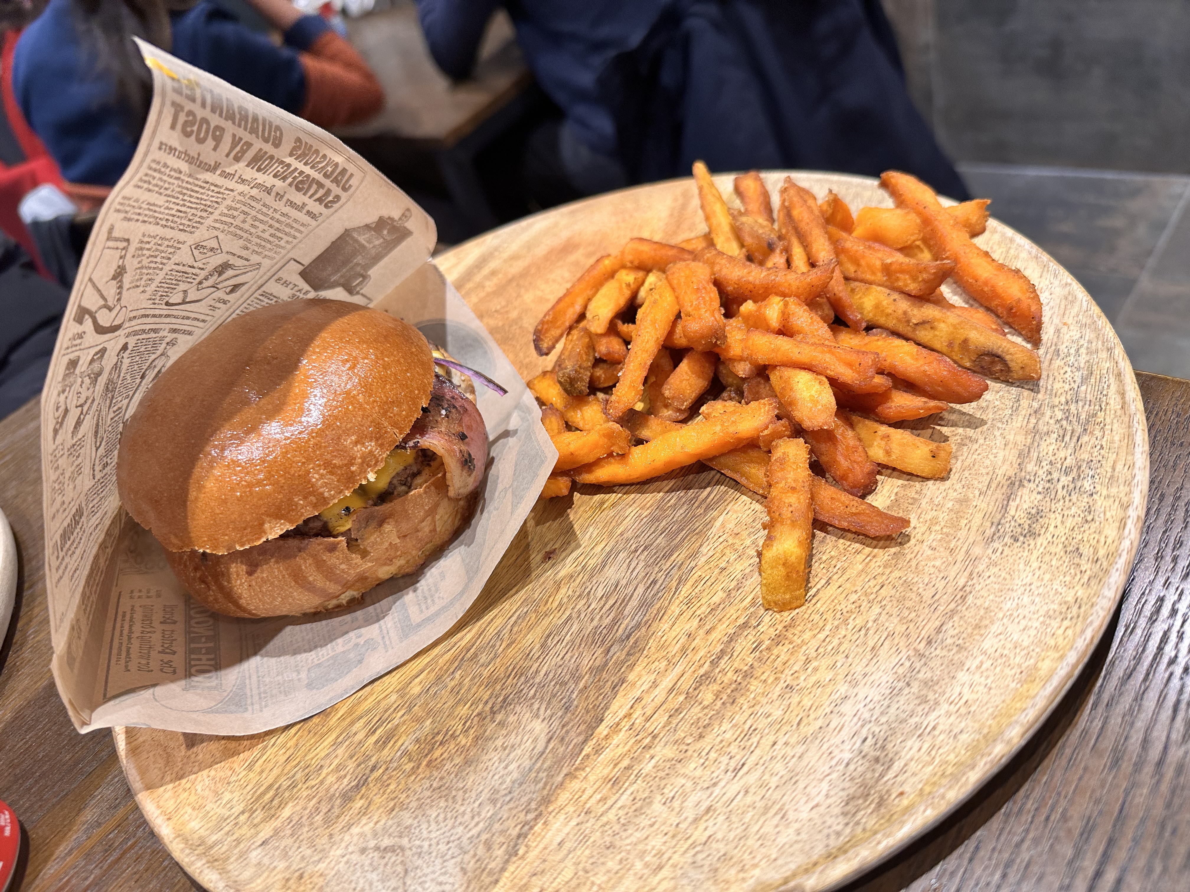 Endroit mignon avec des hamburgers corrects et de bonnes frites. J'ai essayé le smash burger qui était assez bon, et les frites de patates douces étaient excellentes, parfaitement cuites et croustillantes. Les sauces n’étaient pas géniales par contre, ce qui rendait le burger moins bon et je ne les ai pas utilisées sur les frites. Ce serait certainement beaucoup plus élevé d'avoir de belles sauces maison. Un peu cher pour le burger, mais service sympathique.