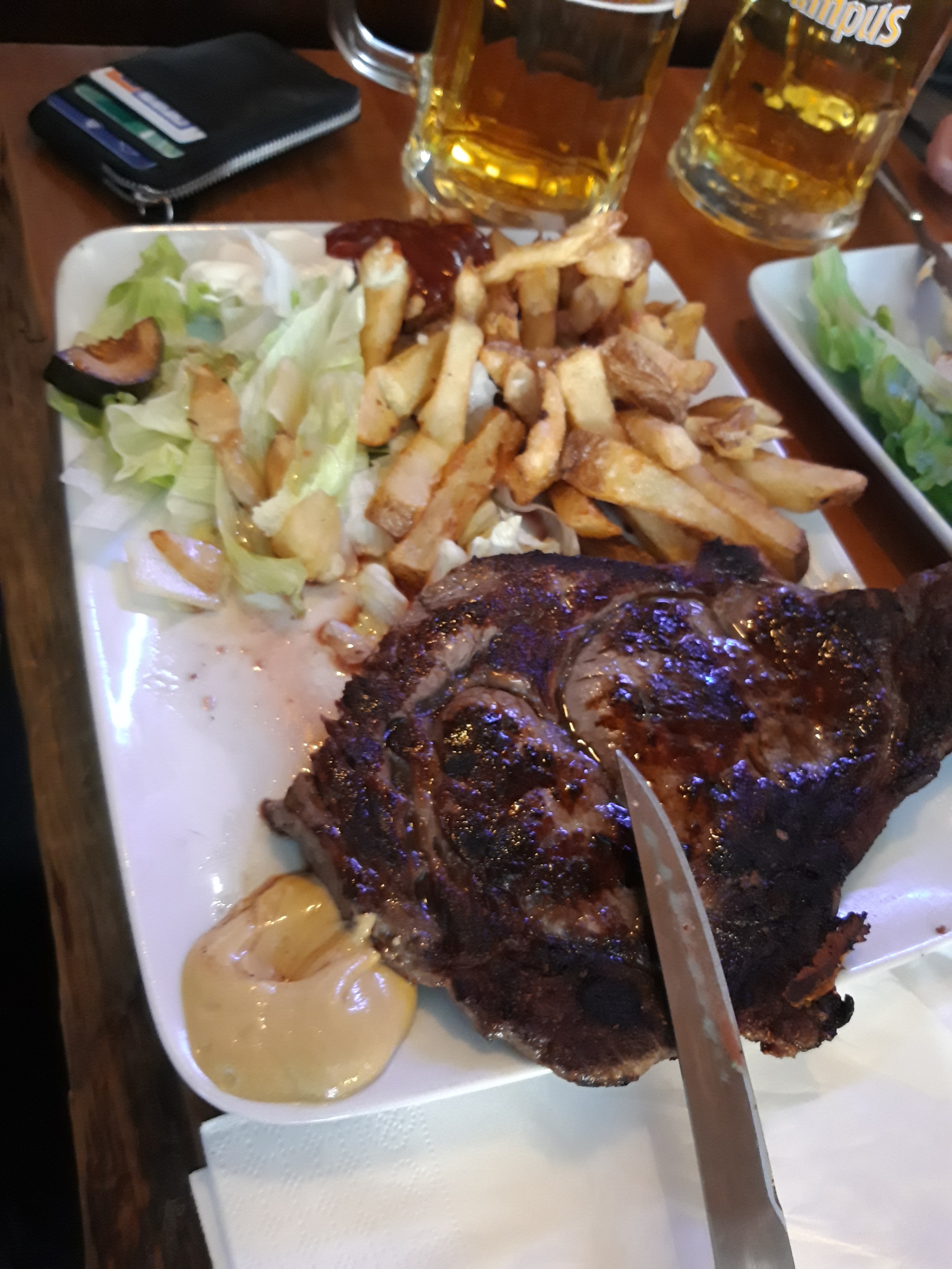 Bière bonne et pas cher 5e la pinte de chouffe, ils servent de superbes entrecôtes à 1h du mat pour 11e, bravo. Très bonnes frites à 5e.Ambiance étudiante agréable. Parfait pour se détendre en after work. Par contre choix musicaux déplorables, on peut le pardonner