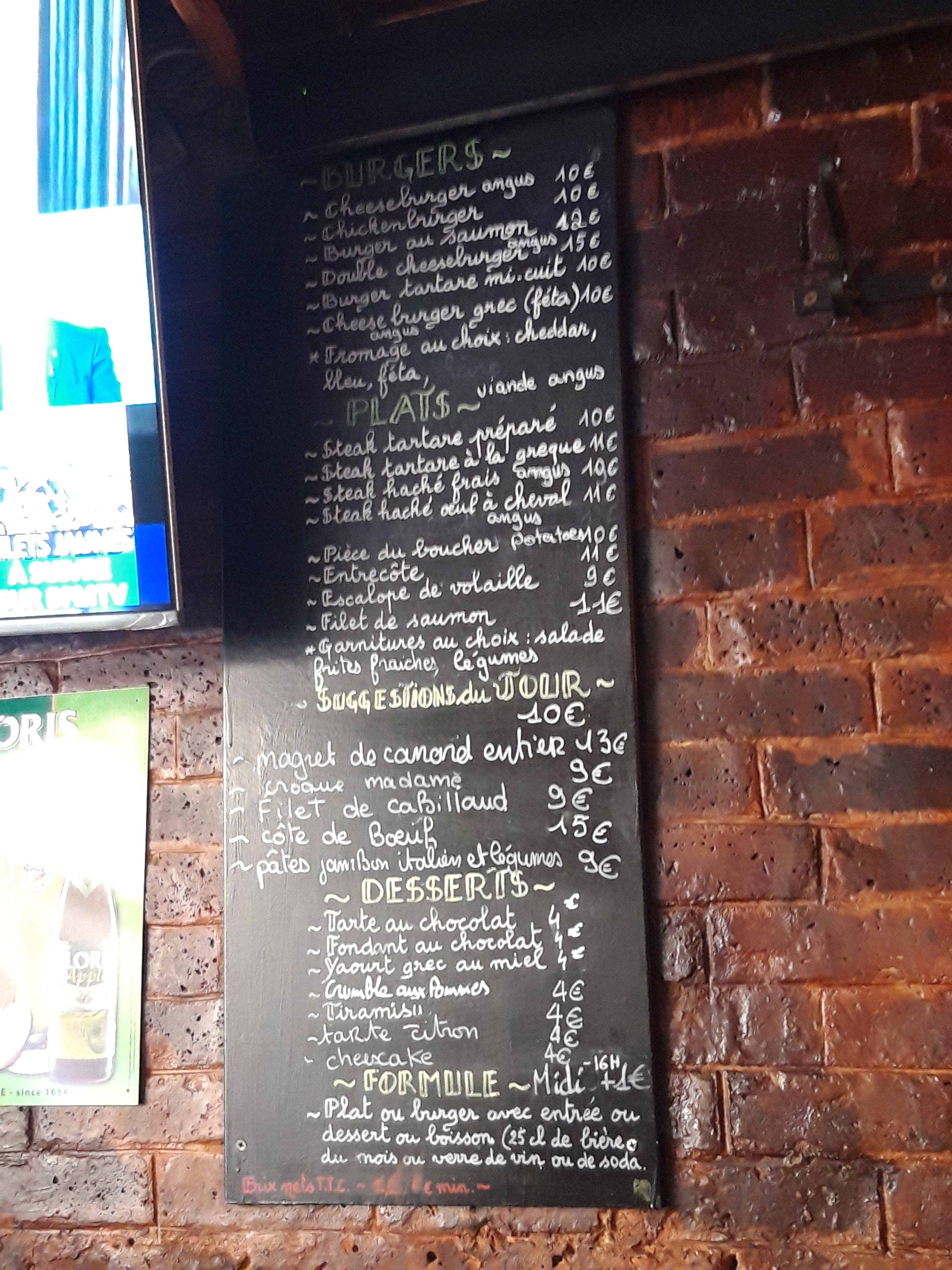 Je viens souvent dans ce bar pour la pinte à 3€. C'est pour cette raison que je note 2/5 et pas 1/5. J'ai mangé aujourd'hui avec des amis dans ce bar, le midi, un regret total. Plus jamais. 30 minutes avant de pouvoir commander, 20 minutes pour avoir ma commande. J'ai pris les tagliatelles au poulet au pesto, les pâtes étaient mauvaises, j'ai eu une touche de près ou ridicule sur mes pâtes (le pesto était pas mauvais mais presque absent). En dessert, le fondant au chocolat était basique, pas fondant mais se serait me plaindre pour pas grand chose. Autre conseil, ne prenez pas la tarte au chocolat en dessert, décevante d'après mon ami. En résumé, manger ici était une erreur.