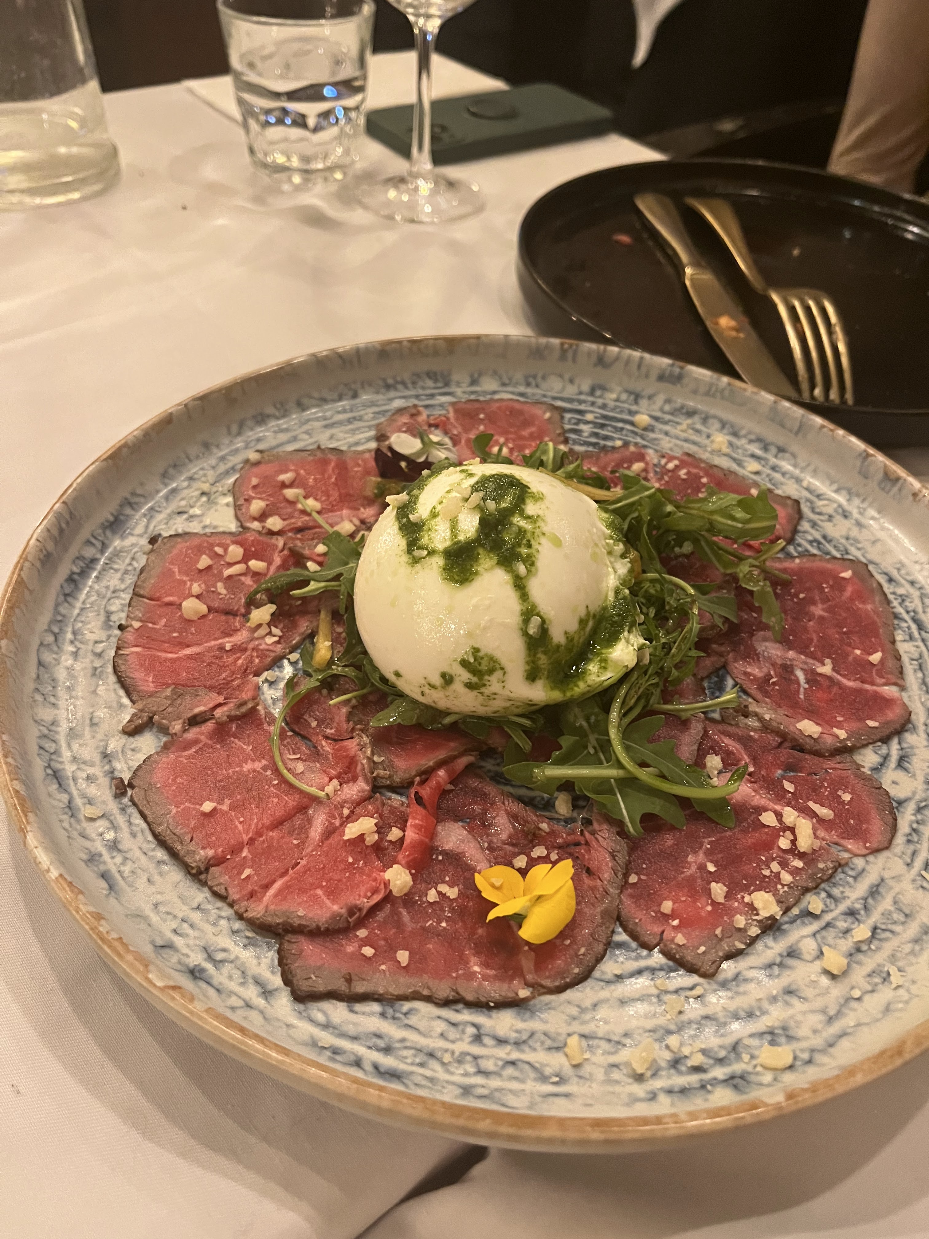 Un restaurant des plus surprenants, un menu français côtoyait un menu italien, nous nous sommes concentrés sur la cuisine française, le carpaccio à la burette et au parmesan était merveilleux, le tartare de bœuf était à la hauteur de nos attentes, le steak était délicieux. Le service était excellent, c'est une entreprise familiale qui fonctionne avec bonheur.