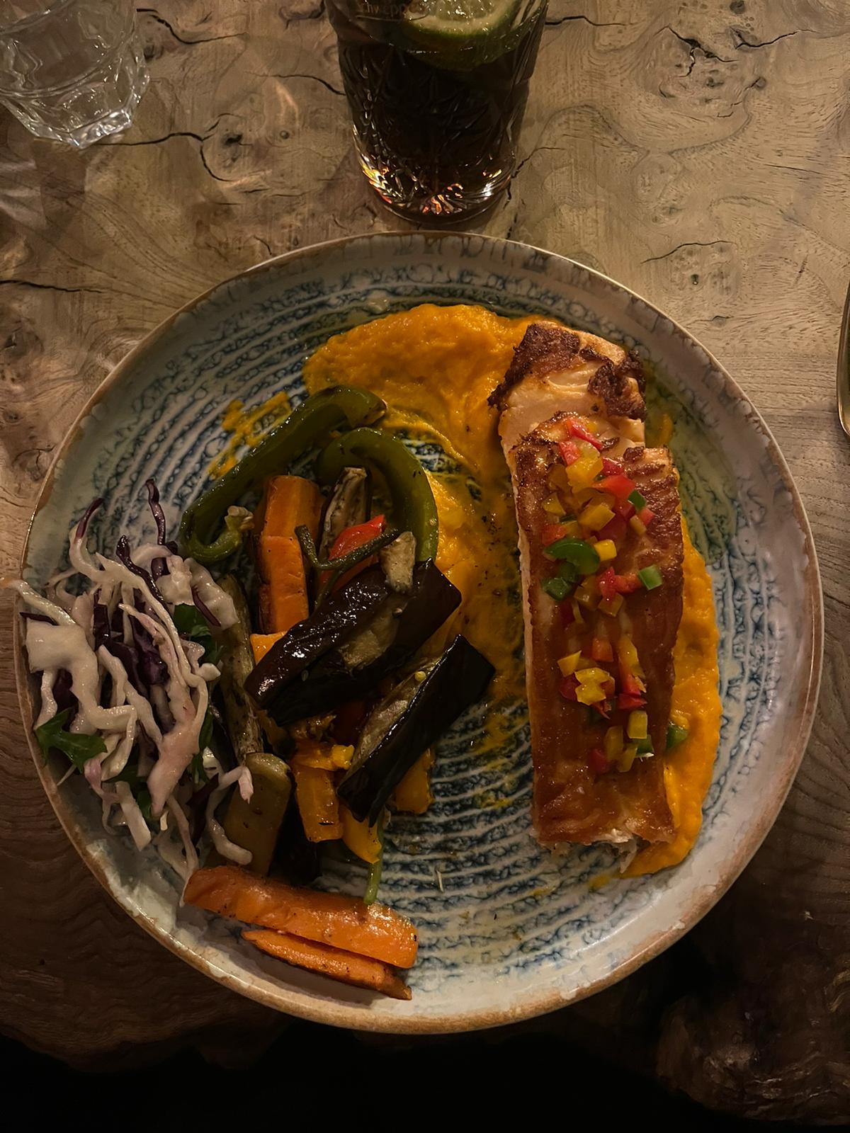Restau sympathique Très belle déco Cependant je trouve les prix exagéré pour les plats servi 18€ une salade végé c’est un peu abusé Les dips et meze sont très bons