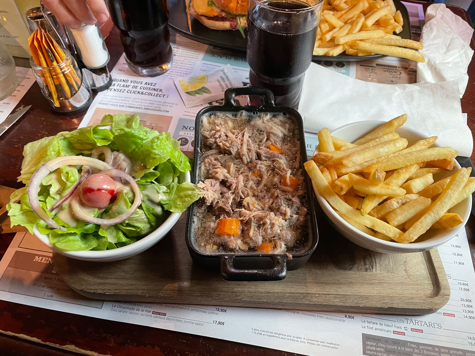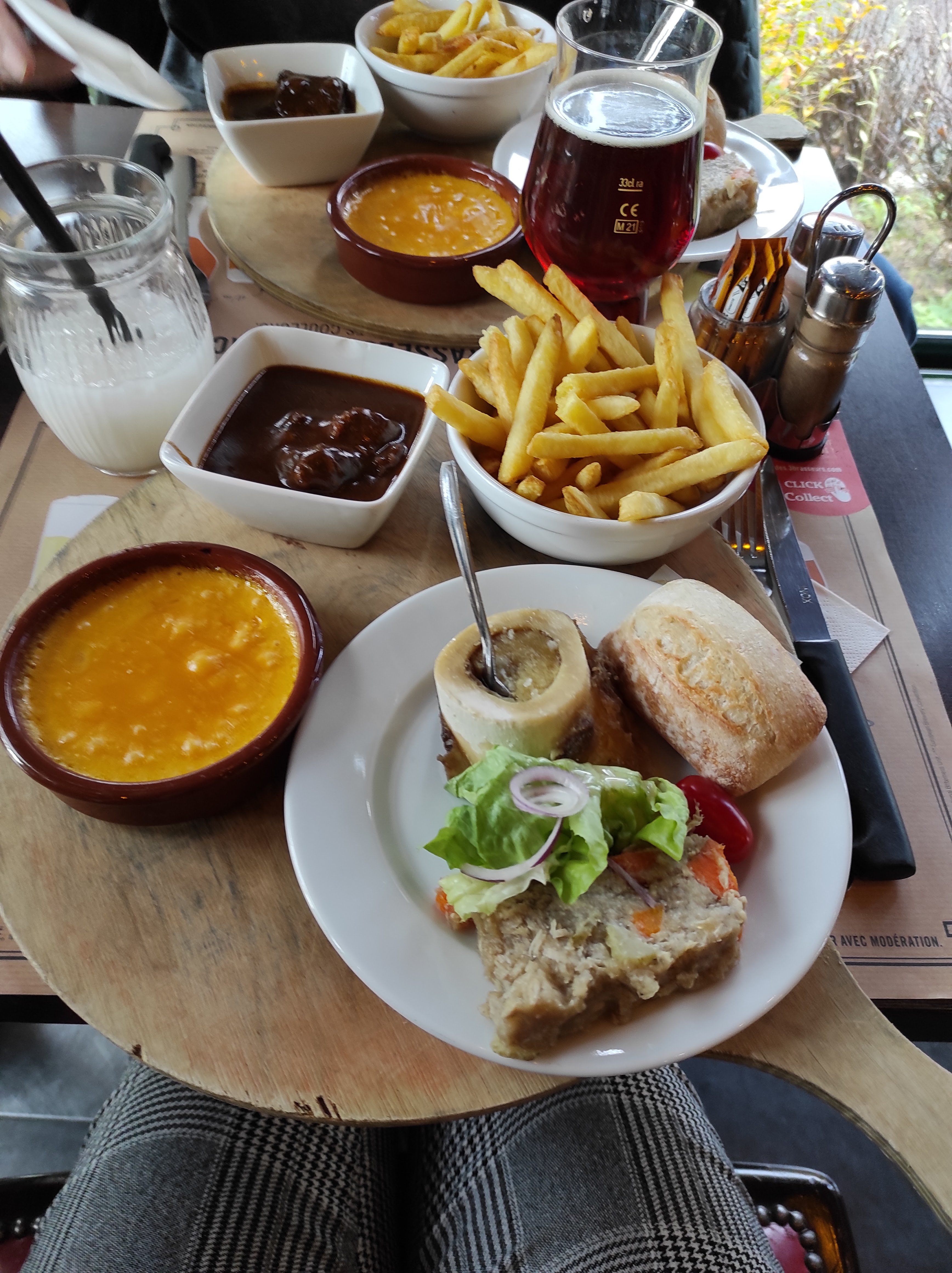 Après avoir franchi la porte, nous avons été accueillis avec un grand sourire que l'on pouvait déceler derrière le masque de l'employée. Une fois nos passe-sanitaires vérifiés, notre table réservée 48 heures avant, nous attendait. Nous avons passé deux heures très agréables ponctuées de rires, de sourires, d'émotions pour cette rencontre de famille tant espérée depuis quatre années ... Le personnel fut aux petits soins pour nous et participait à nos émotions ! Les repas pris par mes convives étaient excellents et peut être un peu trop copieux ! Quant à moi et ma fille de coeur, nous avons pris un Potjevleesch !!! Waouh ! Excellent ... Juste un petit bémol quand même !!! Moi qui aime mettre la gelée sur mes frites ... pas possible ! Il manquerait une belle assiette dans laquelle, nous pourrions disposer les ingrédients de ce plat flamand. Peut-être un point à améliorer ou à penser en demandant une assiette :-)