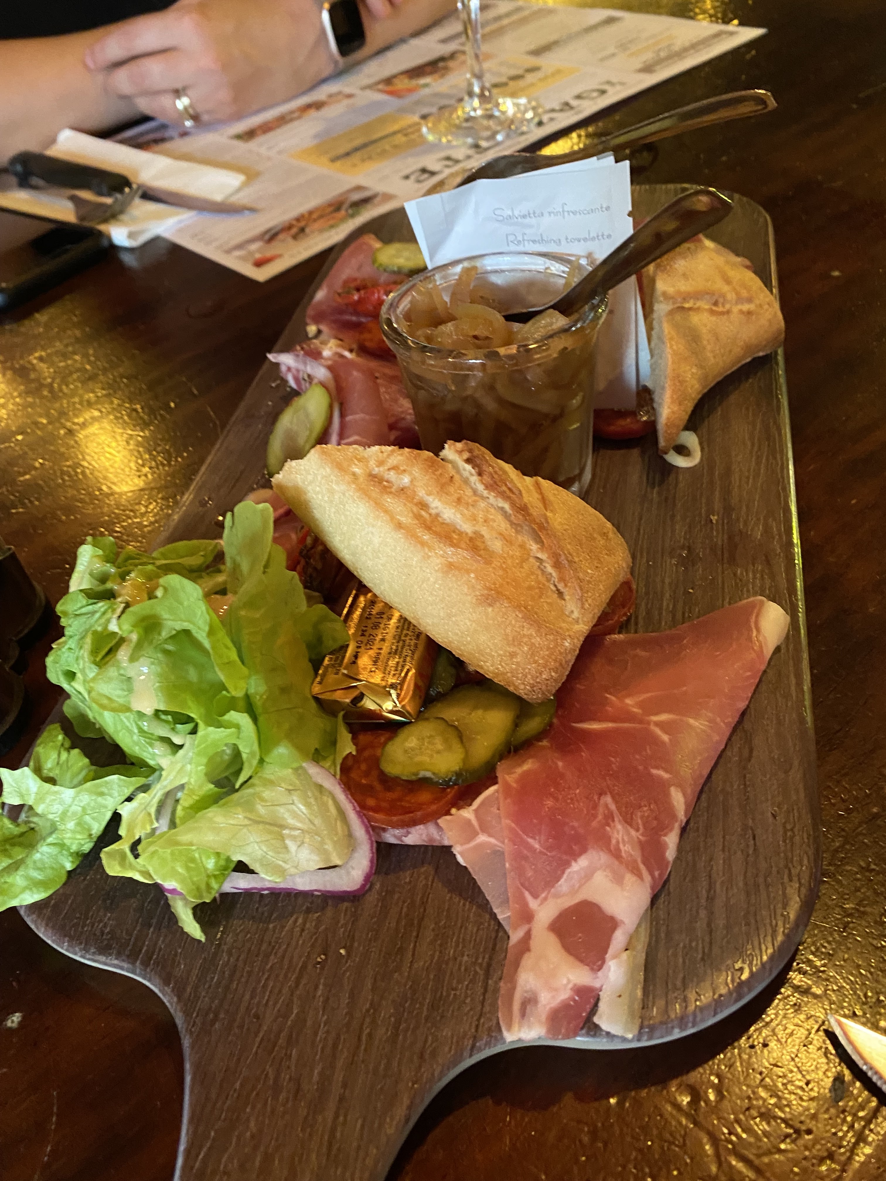 J ai pris la planche mixte(charcuterie + fromage) en plat et j ai été déçue en effet la charcuterie était mal présentée pas de cornichons 2 morceaux de fromage qui essayaient de trouver leur place entre les morceaux de charcuterie. Je n ai pas terminé alors qu habituellement je ne laisse rien C est dommage