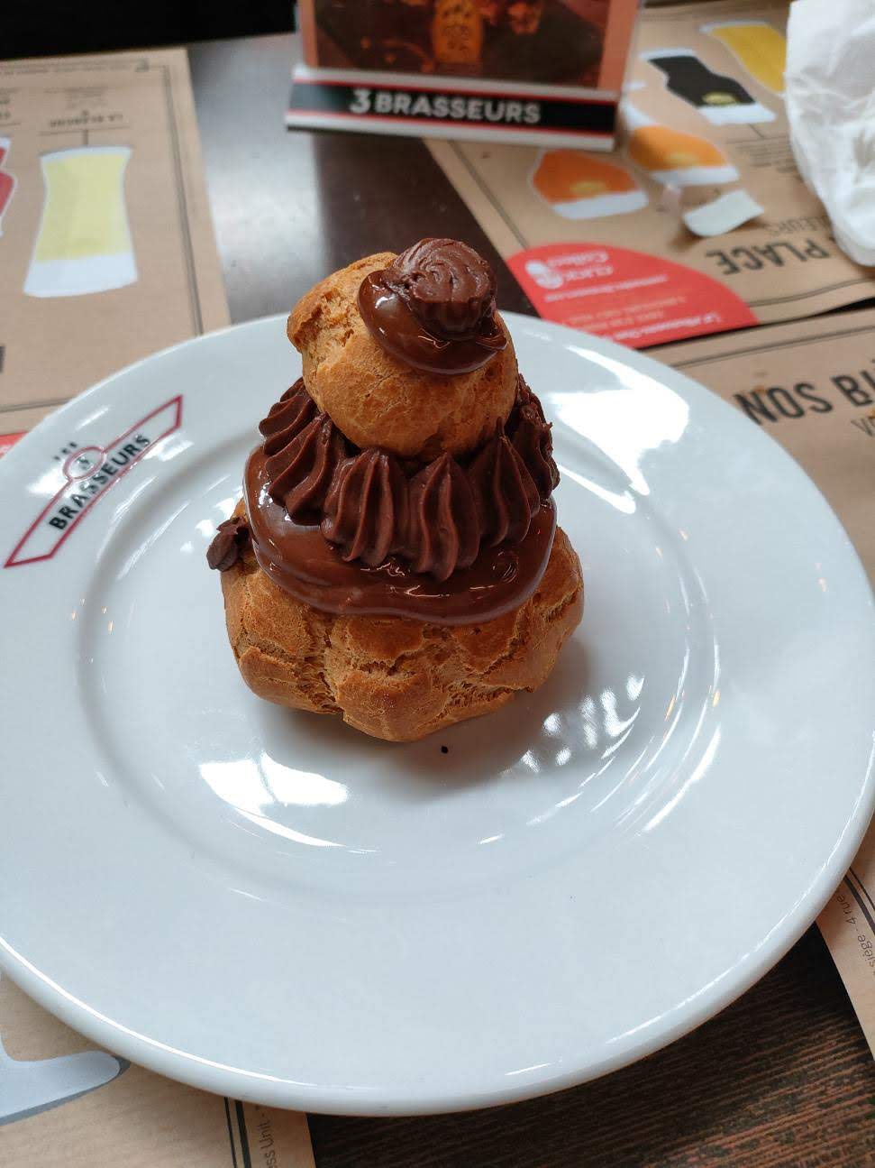 Pas la première visite mais le premier avis 3 brasseurs chaîne connue, plat connus, décoration sympa Les bières sont bonnes mais sans plus Aujourd'hui c'etais pour moi le duo tarti Flam (deux parts de flamenkuch), honnêtement pas terribles, l'une était bonne mais peu garnie et l'autre bof Un vendredi soir de forte affluence certe mais un service approximatif (apéro reçu après les plats..) La salle bondé excuseras cet impert Point positif menu a 20.9€ par personne comprennant une place de ciné Bien pour une sortie vite fais