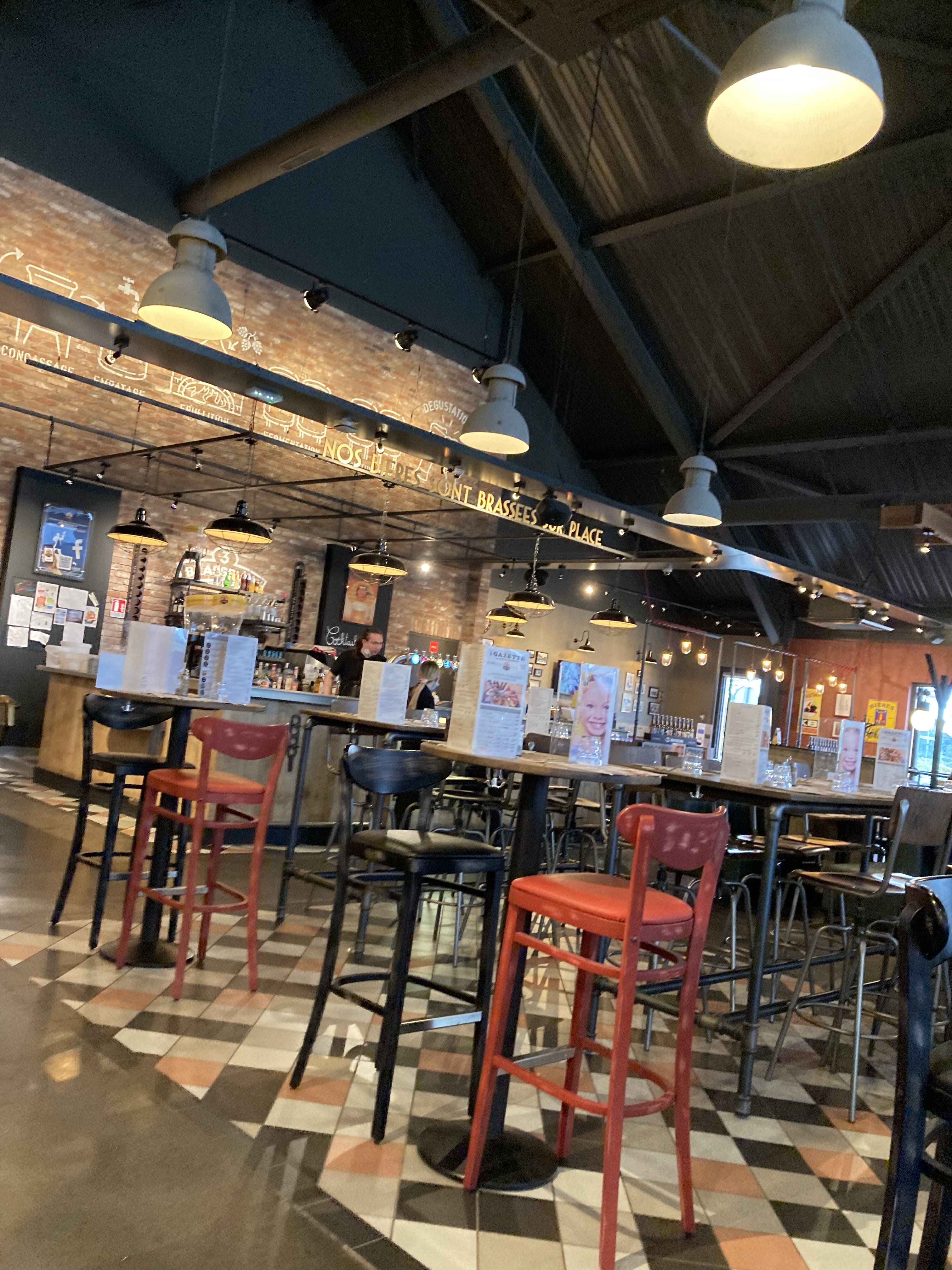 Nous y sommes allés un midi avec mon conjoint. Nous avons tout deux pris une poutine 3 brasseurs avec une planche de légumes ainsi que 2 moktails. Tout le repas était très bon et les portions bien copieuses (nous avons du demander des doggy bags!!) ! Toute l’équipe est très agréable et notre serveur était à l’écoute et tres accessible ! Si nous revenons dans la région, nous n’hésiterons a pas à revenir dans l’établissement ! Au niveau de l’infrastructure, l’atmosphère est parfaitement en corrélation avec le nom de l’établissement et il est agréable d’être à l’intérieur comme à l’extérieur. Pour le parking, pas de soucis pour trouver de la place !