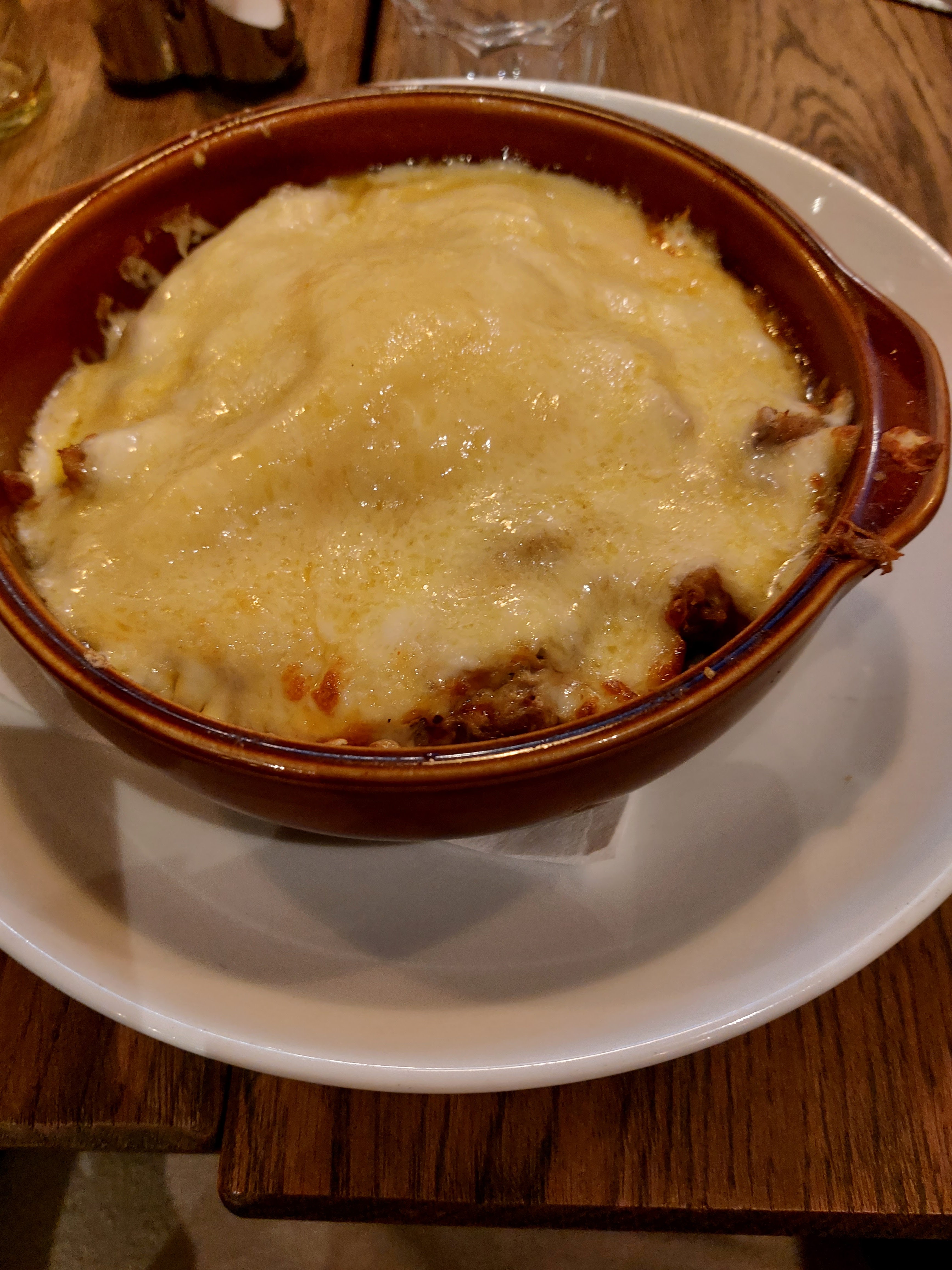 Une bière ambrée excellente, un bon welsh comme dans le Nord avec une saucisse en plus et un serveur au top !