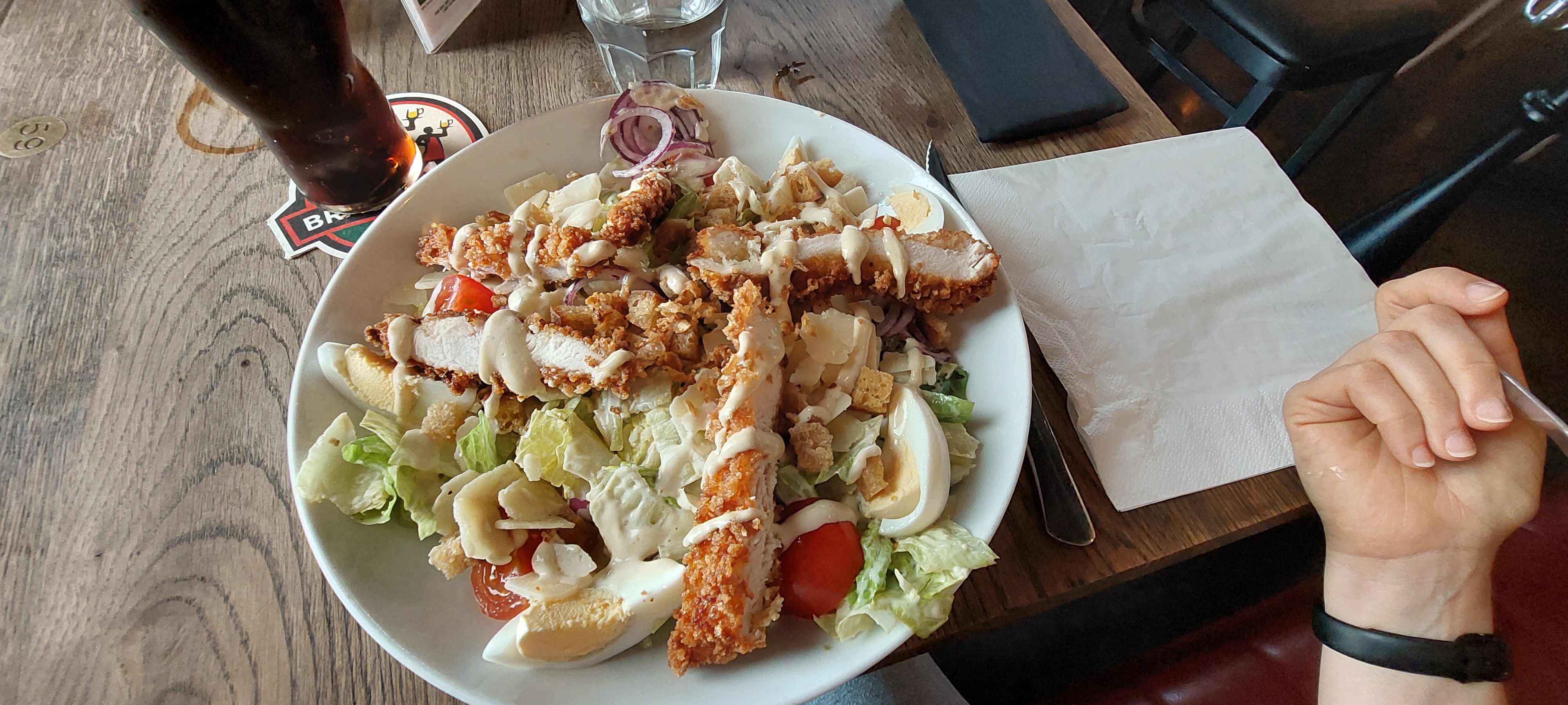 j’ai pris le fish n chips il étais très bon. serveuse sympathique endroit convivial beaucoup de monde mais il est victime de son succès haha