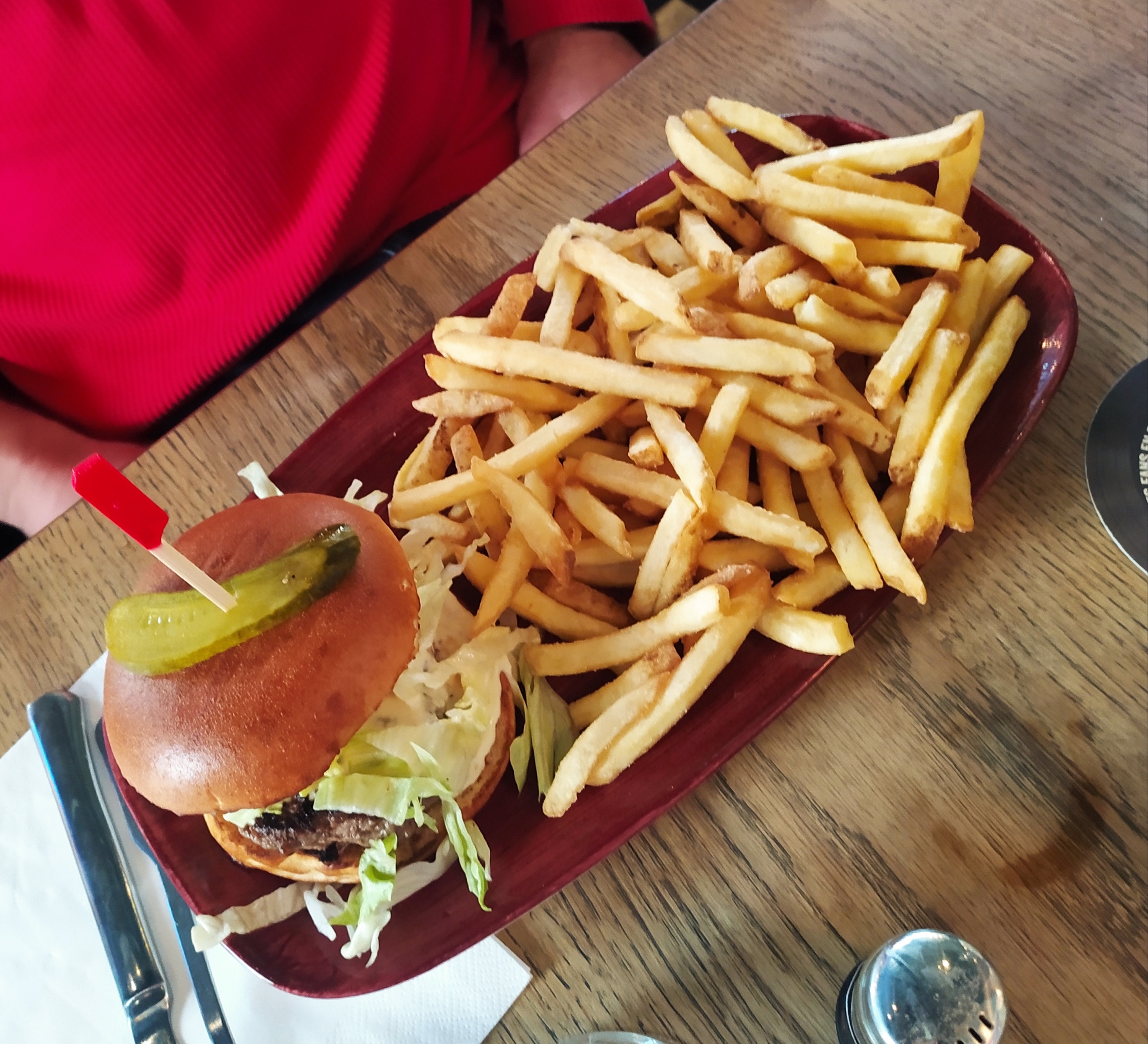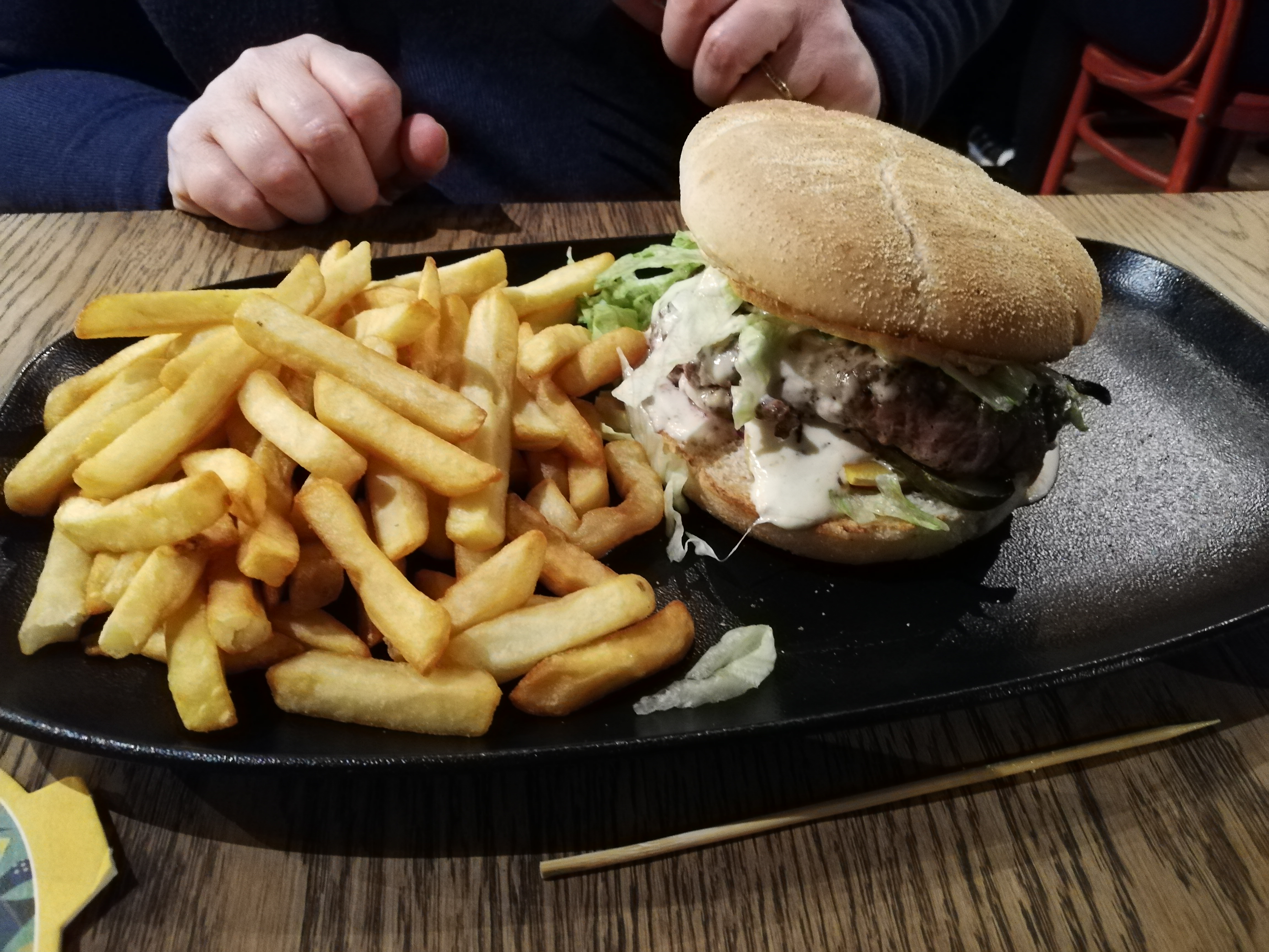 Plutôt satisfaite. La viande dans le burger était très bonne, le bun et les frites aussi. Cependant, je regrette qu’il n’y ait pas plus de burgers simples à la carte. Ou alors, j’aurais aimé avoir au moins le choix de plusieurs sauces dans le burger, n’étant pas fan de sauce barbecue. J’ai aimé le dessert mais par contre je pense qu’il est un petit peu trop cher (8,90€). Globalement, bonne expérience.