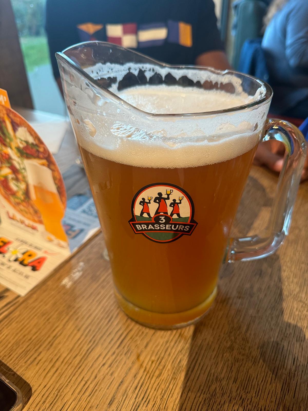Originaire du Nord, et connaissant depuis longtemps la chaîne des 3 brasseurs, j'ai apprécié retrouver la qualité des plats typiques comme le pot'je vleesch ou le fameux Welsh. Les bières brassés sur place sont délicieuses. Je n'ai pas été dessus de la qualité du service malgré une arrivé à 19h20 un samedi et sans réservation. Serveur agréable et compétant. Un point positif également : l'accueil pour les enfants avec crayon de couleur et feuille de jeux. Nous reviendrons encore plus nombreux.