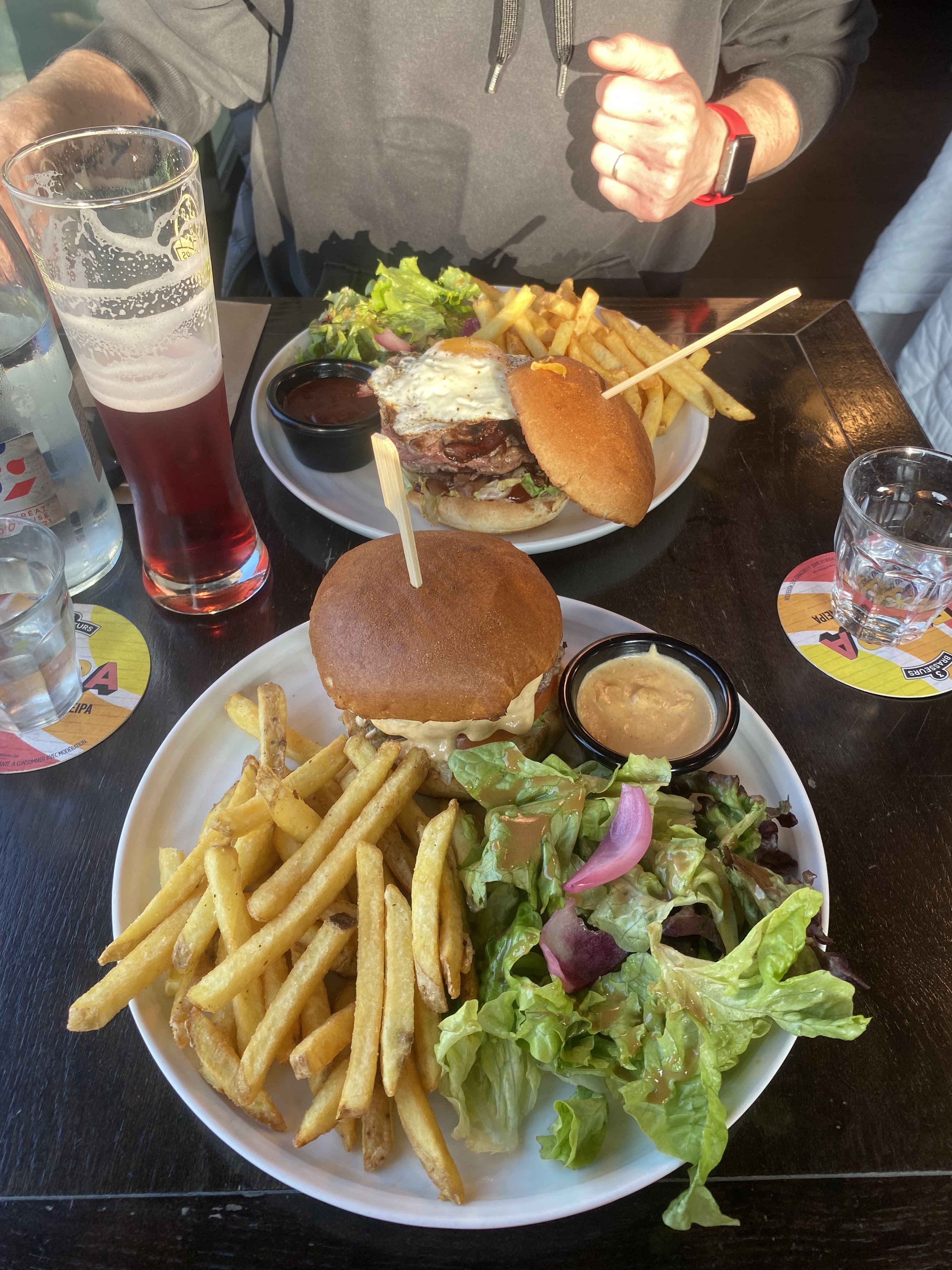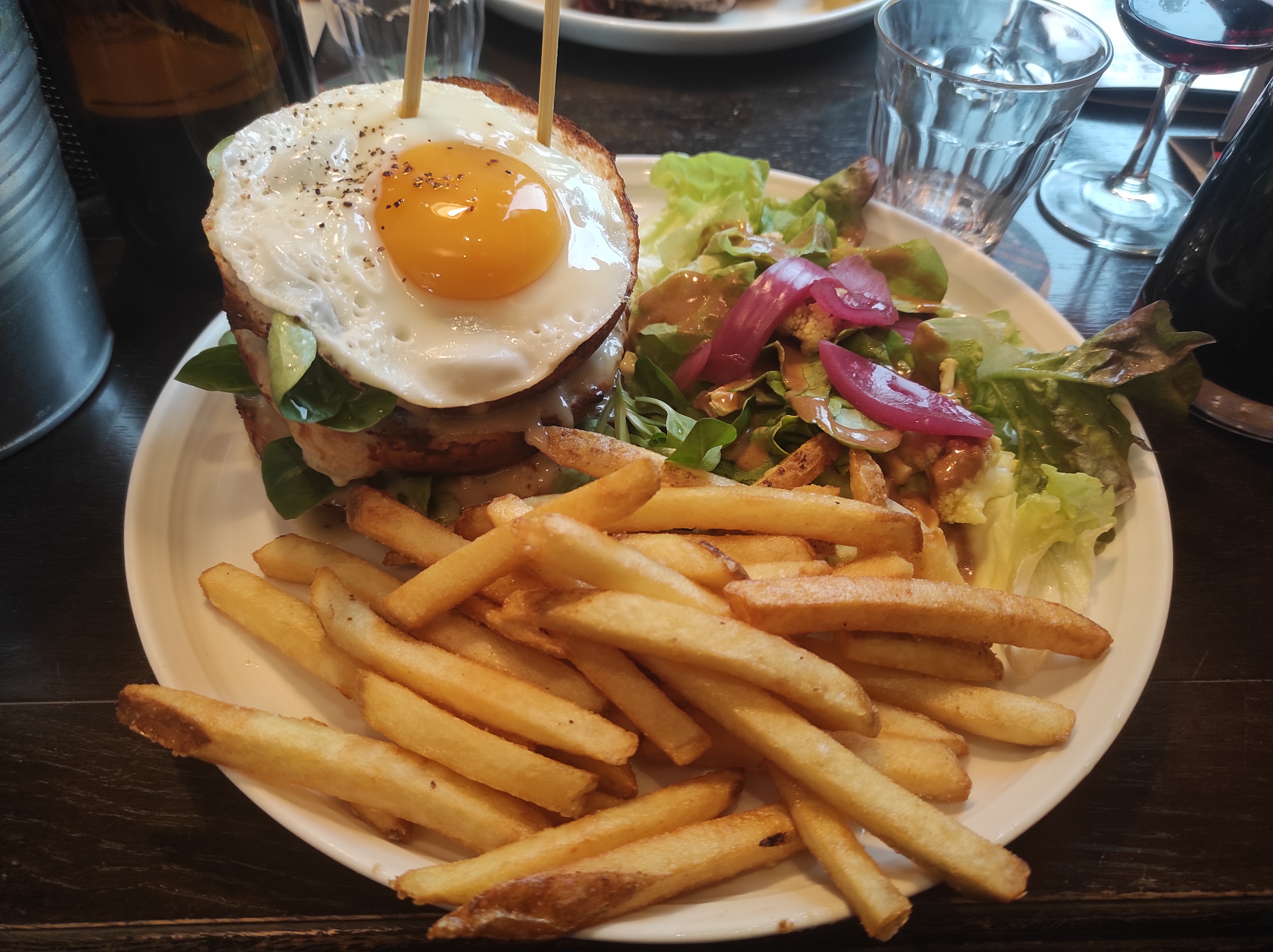 Table proche de la porte de cuisine vraiment désagréable, par l'odeur et le passage intense Burger commandé sans œuf et arrivé avec, la serveuse a juste enlevé l'œuf sans savoir si j'étais allergique