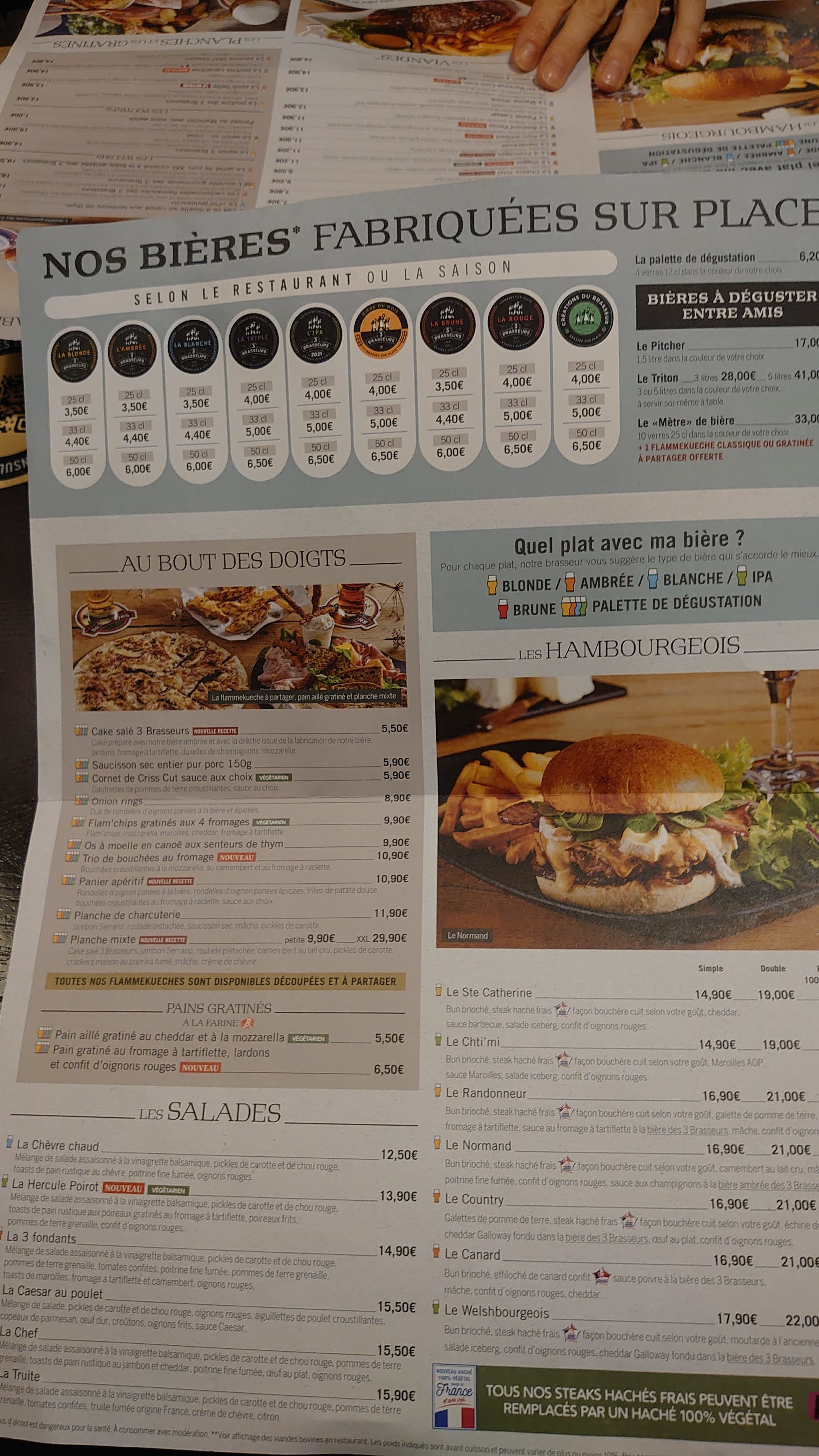 Toujours au top les 3 brasseurs! Juste dommage d’être toujours assis sur les tables hautes quand nous arrivons sans réservation. Et dommage que la maison ne fasse plus de purée, elle était excellente.