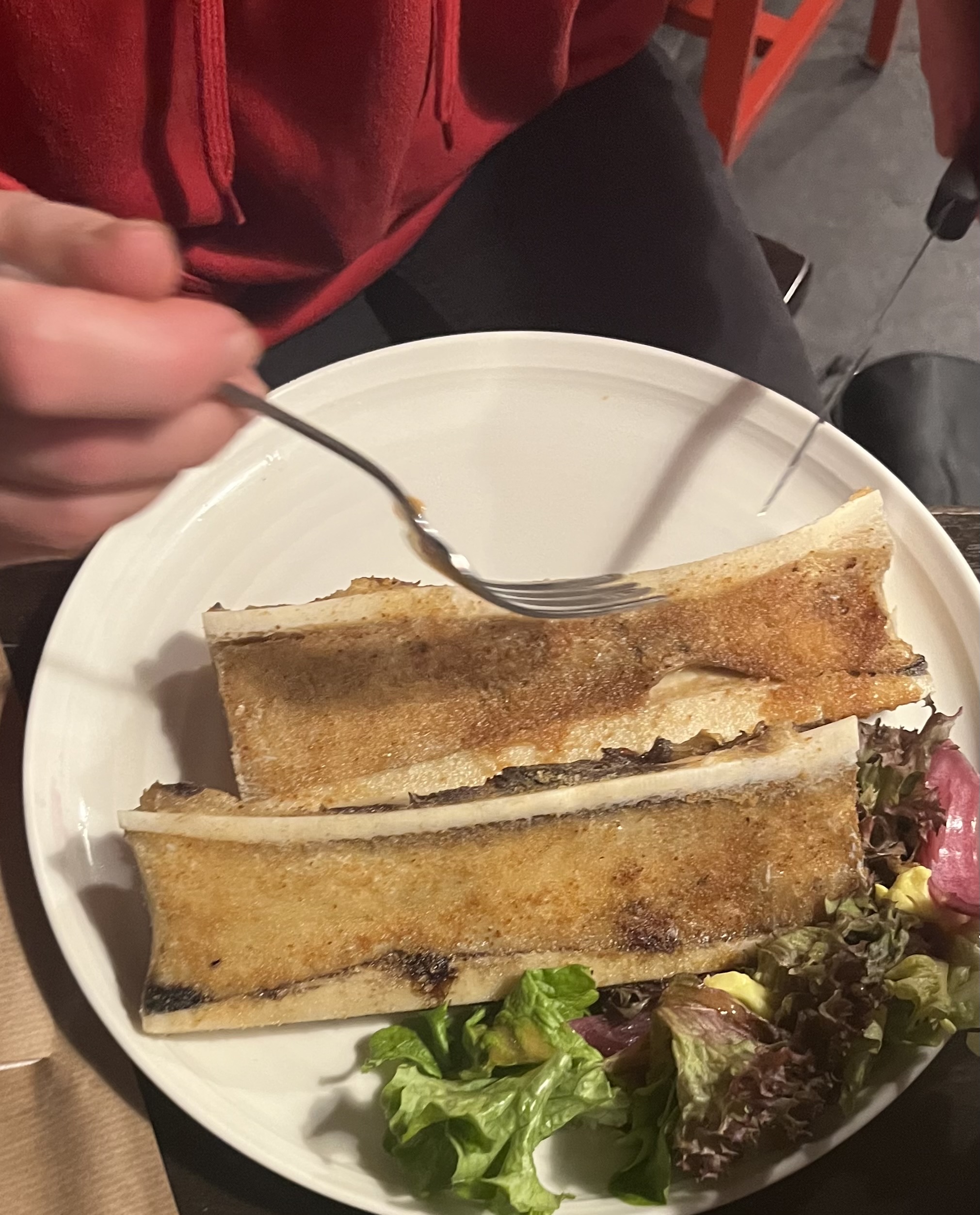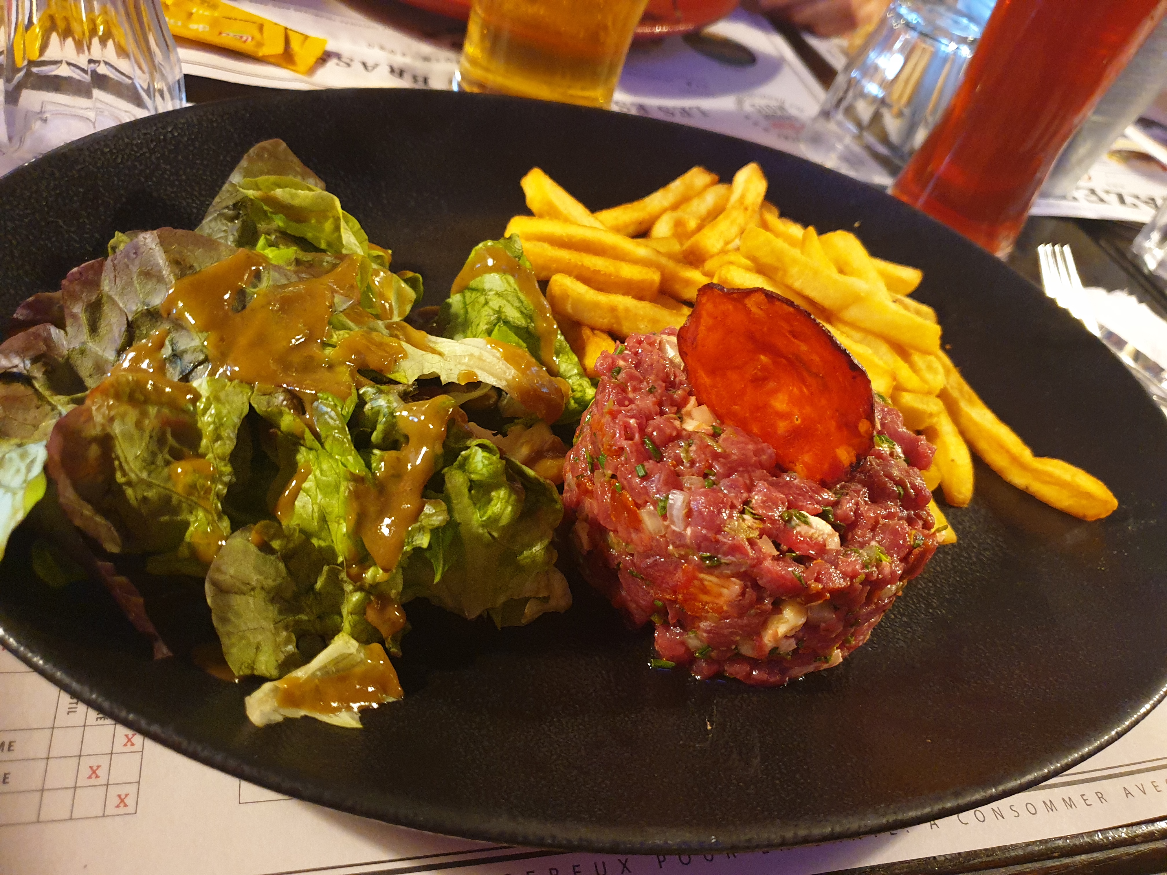 1h d’attente pour l’arrivée des boissons qui attendaient au bar. Une petite salade chèvre chaud qui paye pas de mine. Un os à l’os sans assaisonnement. Les pauvres serveurs qui étaient dans le rush un dimanche soir. Peut être faudrait-il mettre un runner ou padder en plus ? Merci quand même à la serveuse pour sa gentillesse.