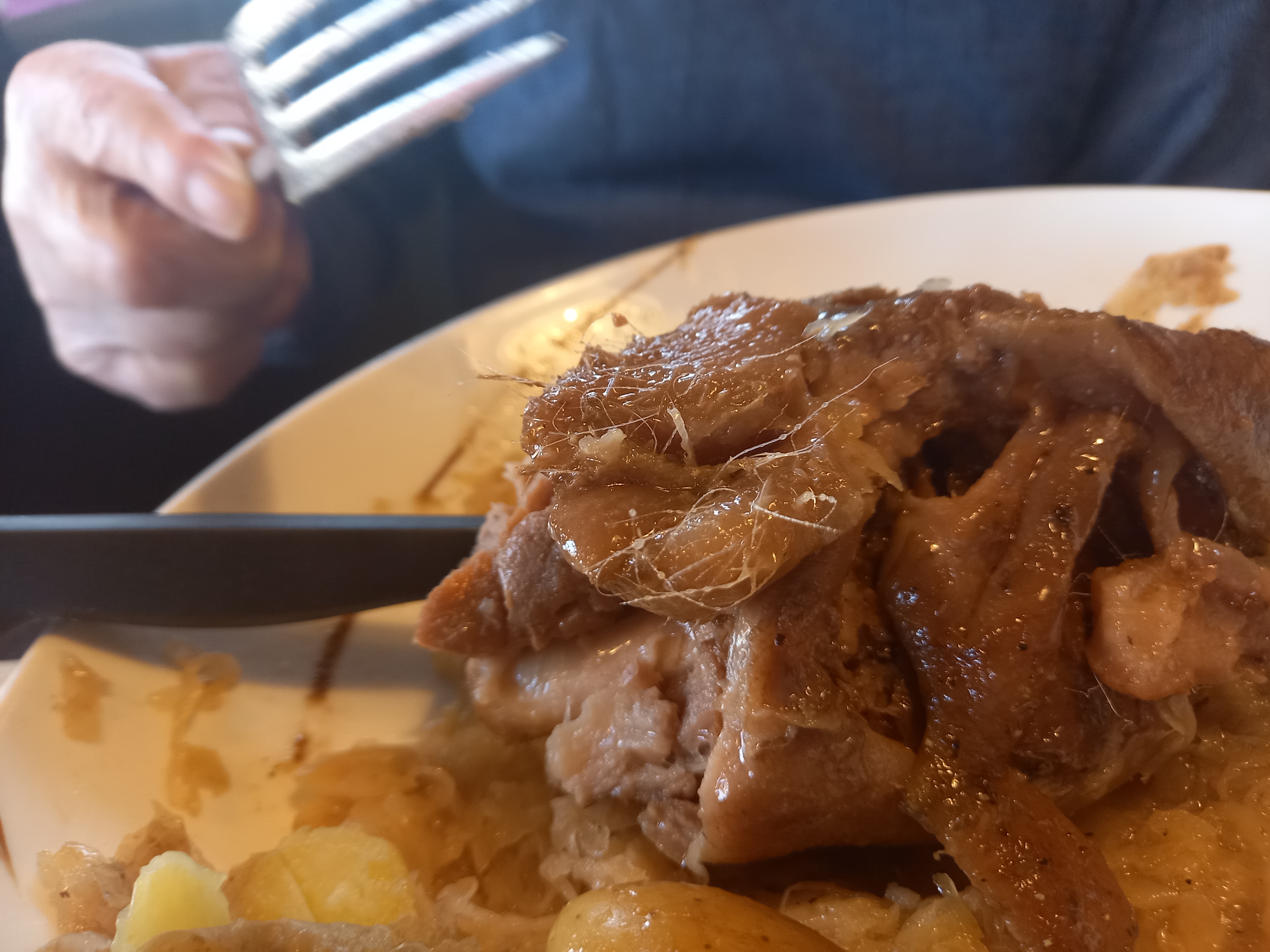 Nous avons pris la formule choucroute classique et de la mer les viandes et poissons étaient bien cuits et très bons, le choux trop acide pour nous