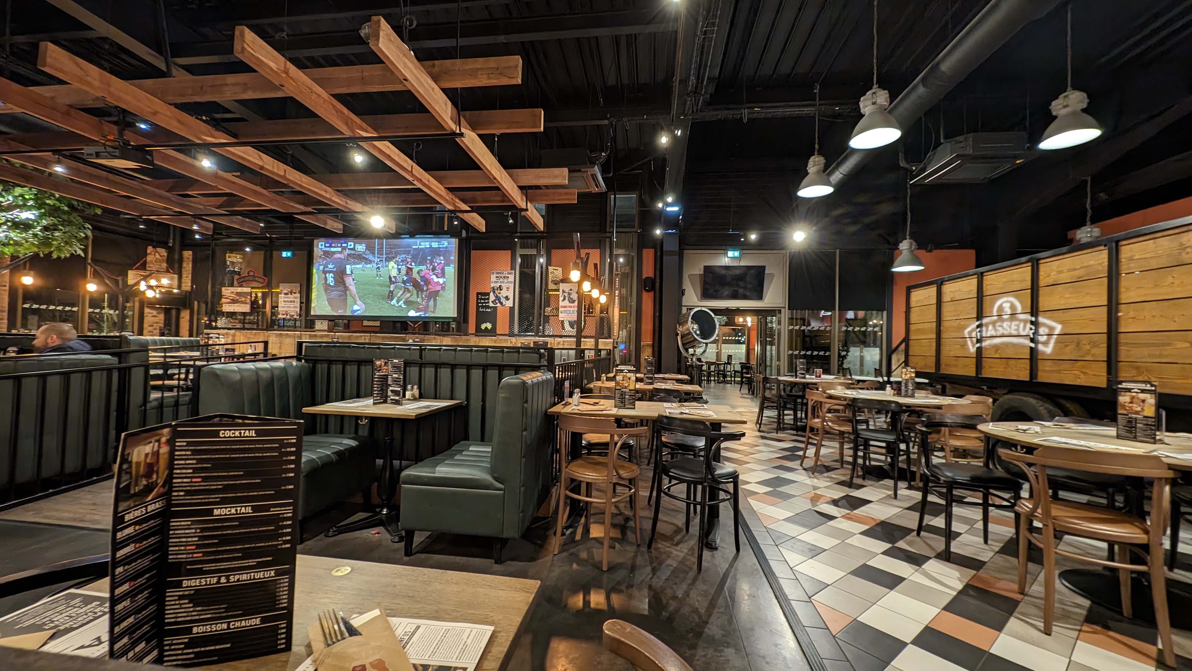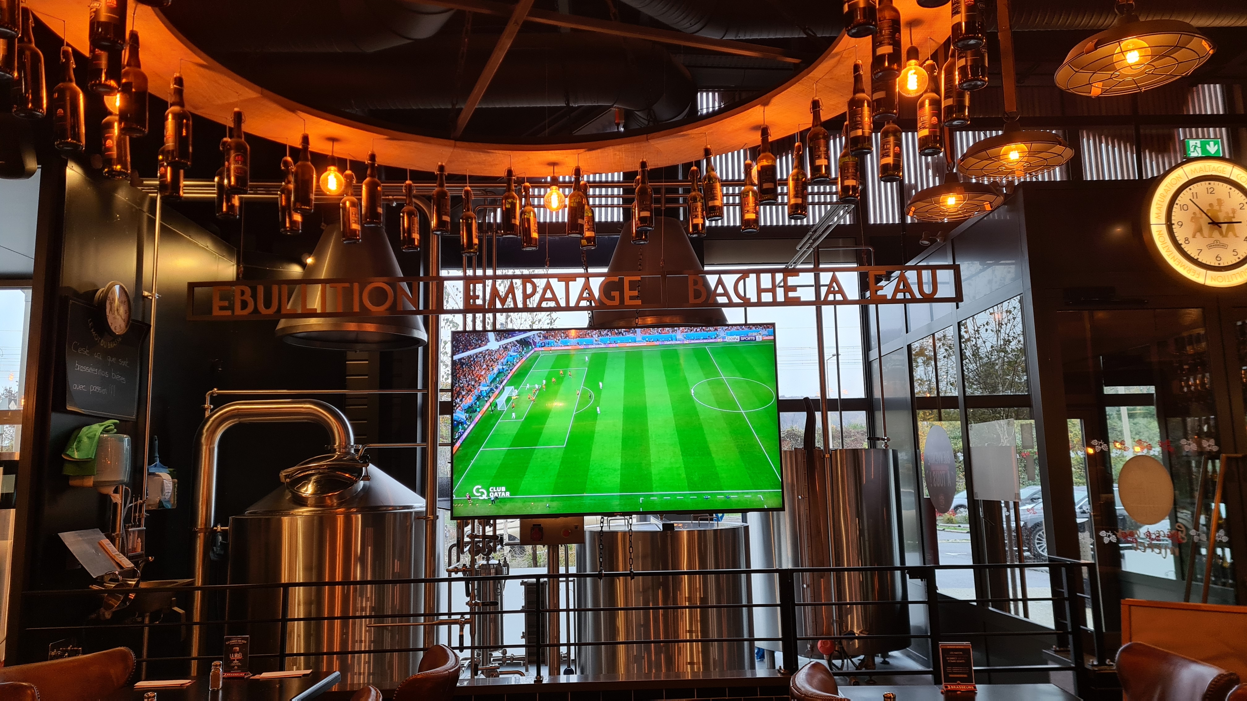 Bonne déco de brasserie, bonnes bières, bon burger au maroilles, bon match... bref que du bon 😉