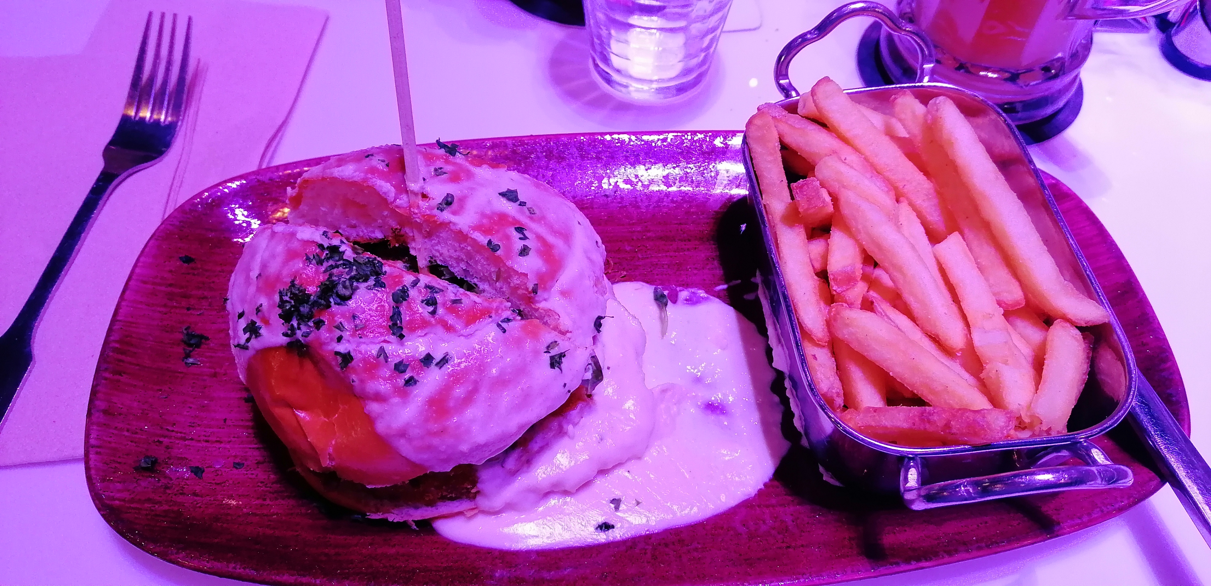 Accueil sympa serveur sympa mais je commande un Burger sans porc il mon ramené le Burger avec du porc je les renvoyer il mon changer plateau et mon ramener la même chose avec le porc je le renvoie 3 eme c’est la bonne je commence à manger je remarque le porc cacher dans le Burger aucun geste juste un désoler pour au final attendre 1h pour pas manger