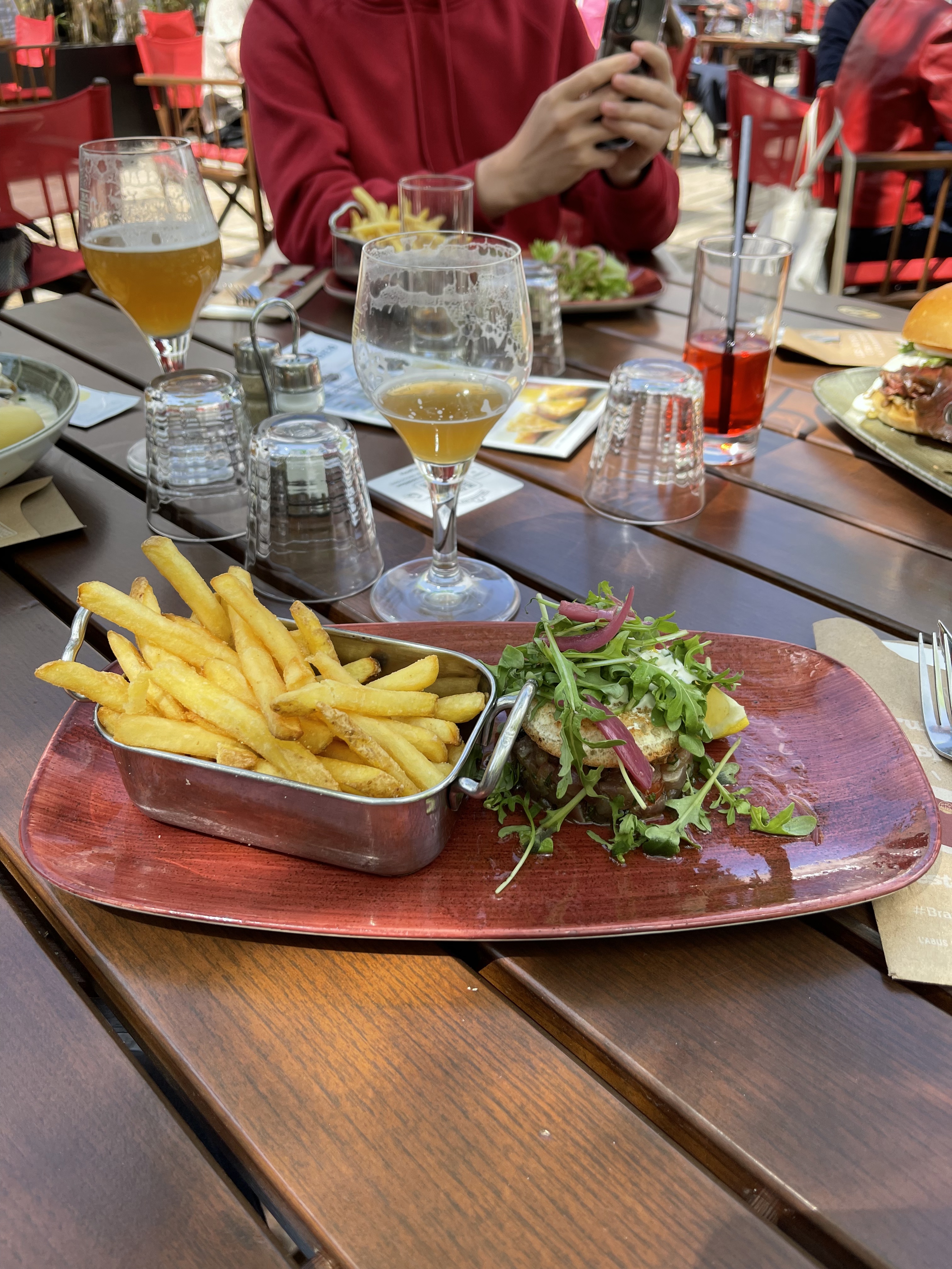 En terrasse les tables sont sales et couvertes de crottes de pigeon, le service est un peu long même si nous n’étions pas pressé aujourd’hui.
