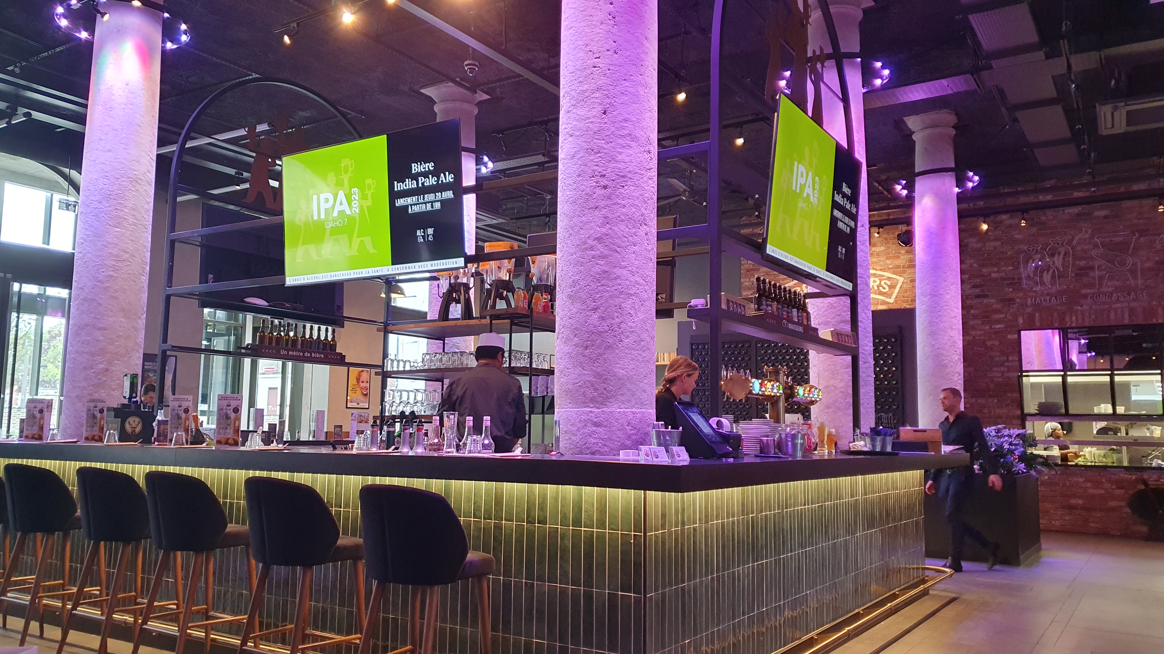 Pour prendre un verre ou se restaurer, c'est l'endroit idéal, on y trouve facilement de la place même pour un petit groupe. Le service est rapide, il y a une grande terrasse. Peut-être un peu trop de bruit, mais il y a des coins plus tranquilles. On y brasse de très bonnes bières qui sont renouvelées régulièrement et présentées avec beaucoup d'humour dans un petit film. Profitez de l'heure heureuse pour les bières, entre 17H et 19H.