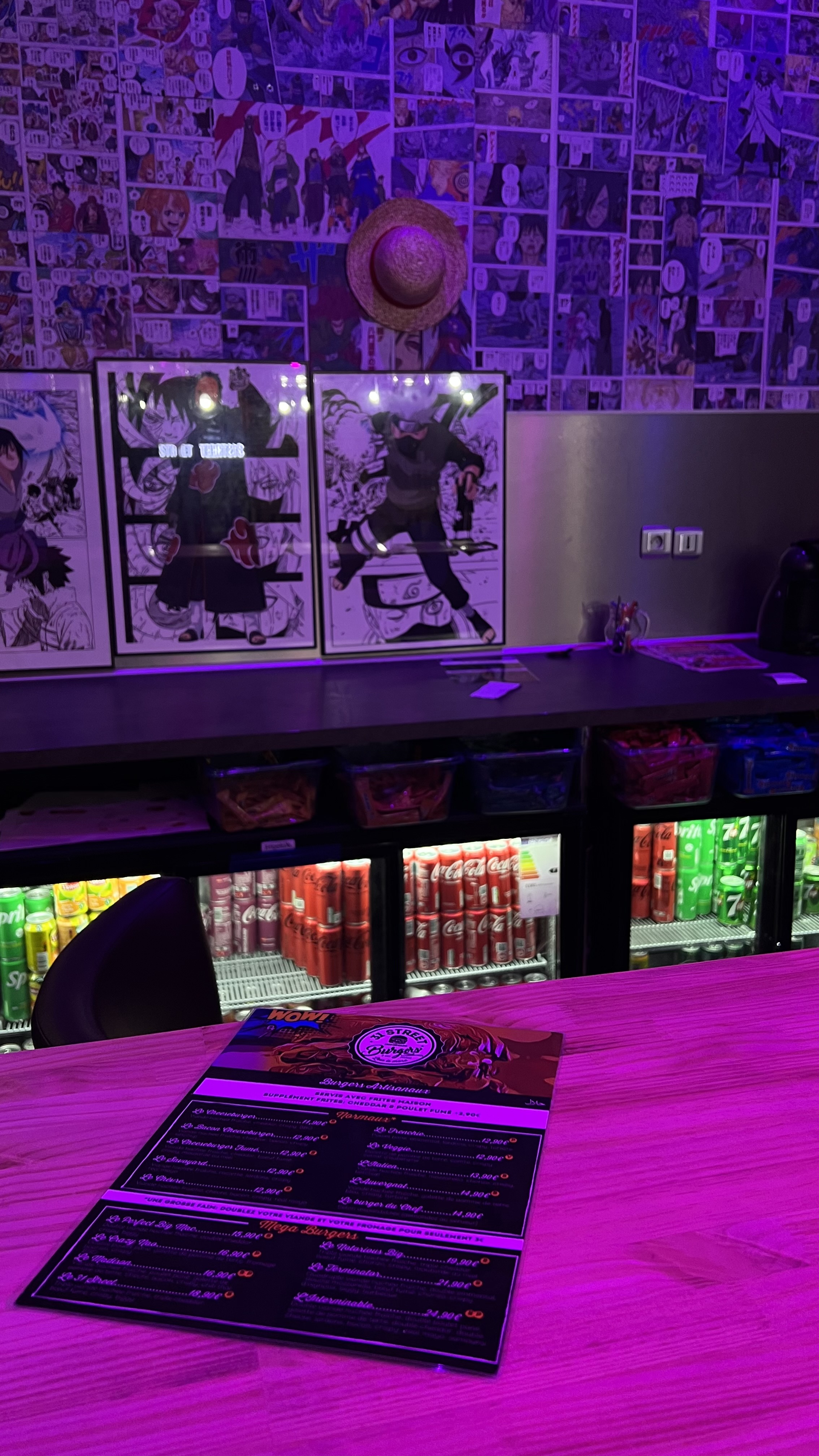 J'ai goûté le big, les frites et des nuggets. C'était excellent ! Déco qui plonge dans le thème manga, même si je suis pas fan j'apprécie le voyage.