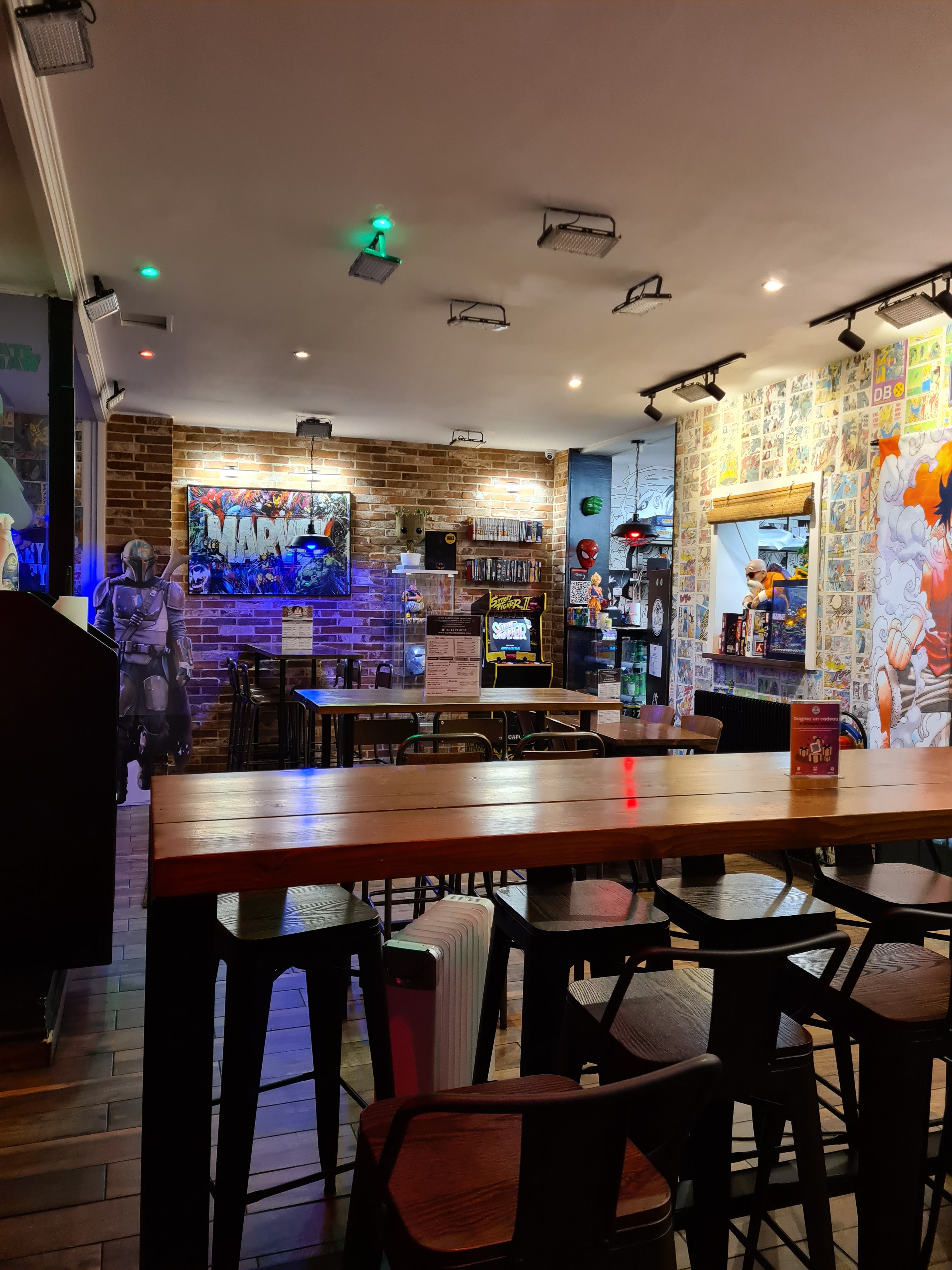 Nouveau concept super intéressant La cuisine est excellente La déco est super pour les fans de comics/Star Wars ou encore animés Et on est super bien accueilli Je recommande