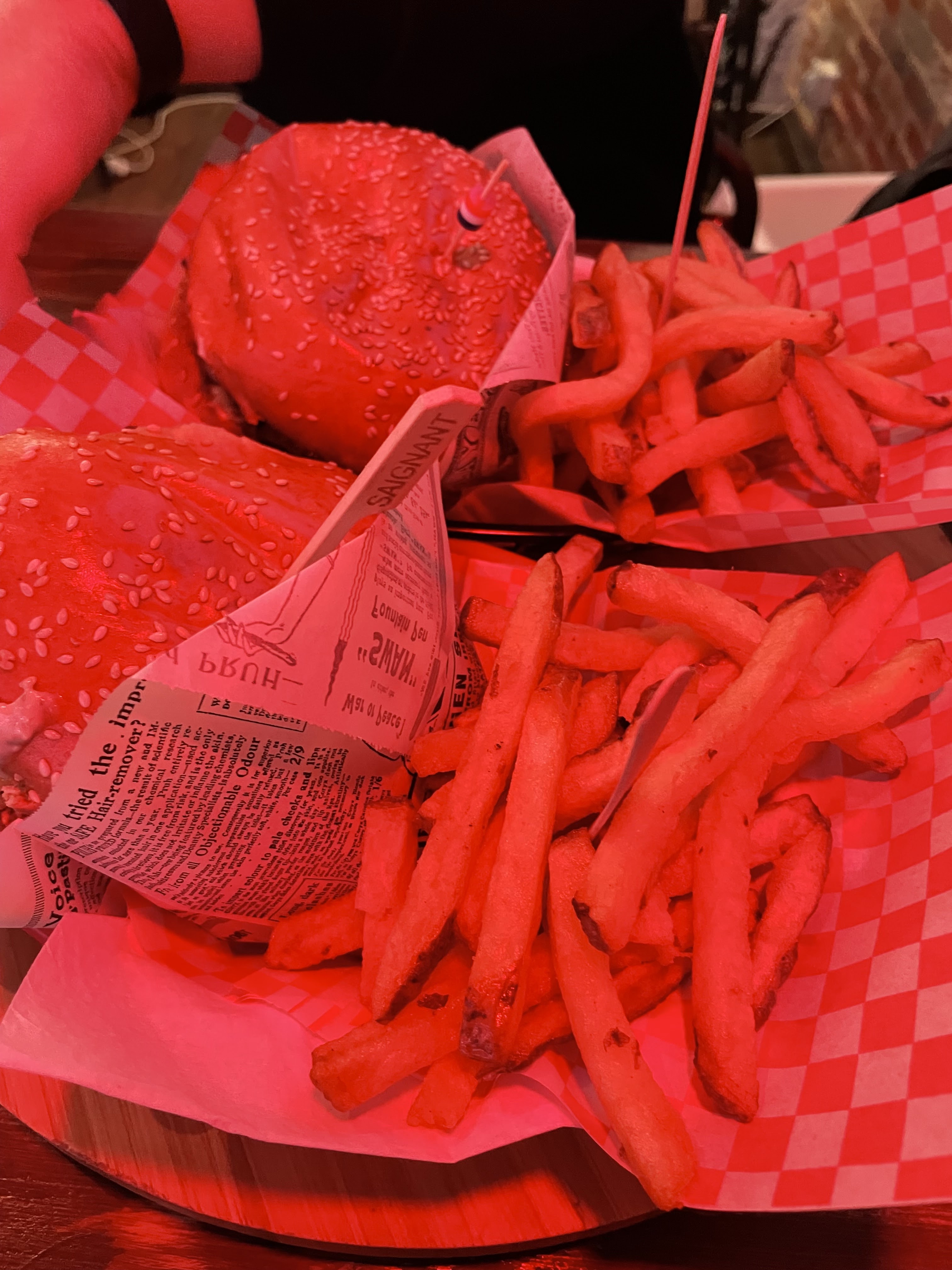 Le Service était au top Le serveur Youssef et bienveillant et attentionné Youssef est Petits soins Parce qu’il nous a fait kiffer notre soirée les hamburgers et les frites étaient incroyables Tout fait maison Foncé, sans hésitation Le tout devant un petit film dans une salle secrète