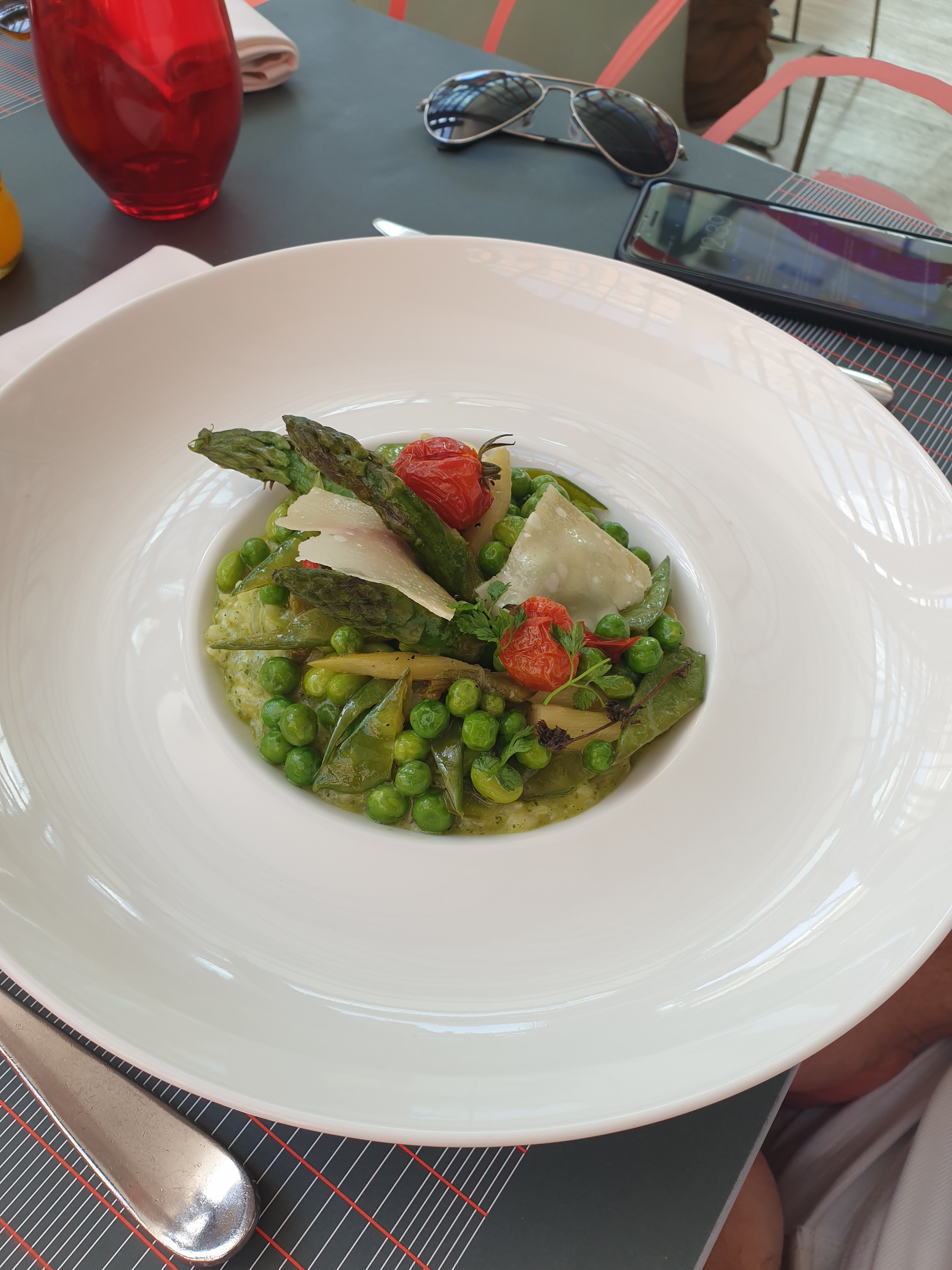 La carte ne change pas beaucoup. La preuve, elle a des taches de gras et la mienne était déchirée. Nous avons eu les cocktails après le vin et les entrées. Les serveurs sont gentils mais complètement inefficaces. Pas de communication entre eux donc service déplorable. Pour la cuisine, je dirai que le cuisinier est amoureux, trop salée. Risotto correct mais rien d’exceptionnel. J’habite à côté du restaurant depuis de nombreuses années et je vois une dégradation constante. Ils se sont installés dans une routine et n’ont pas de considération pour les clients. Faites un tour aux toilettes et vous comprendrez.