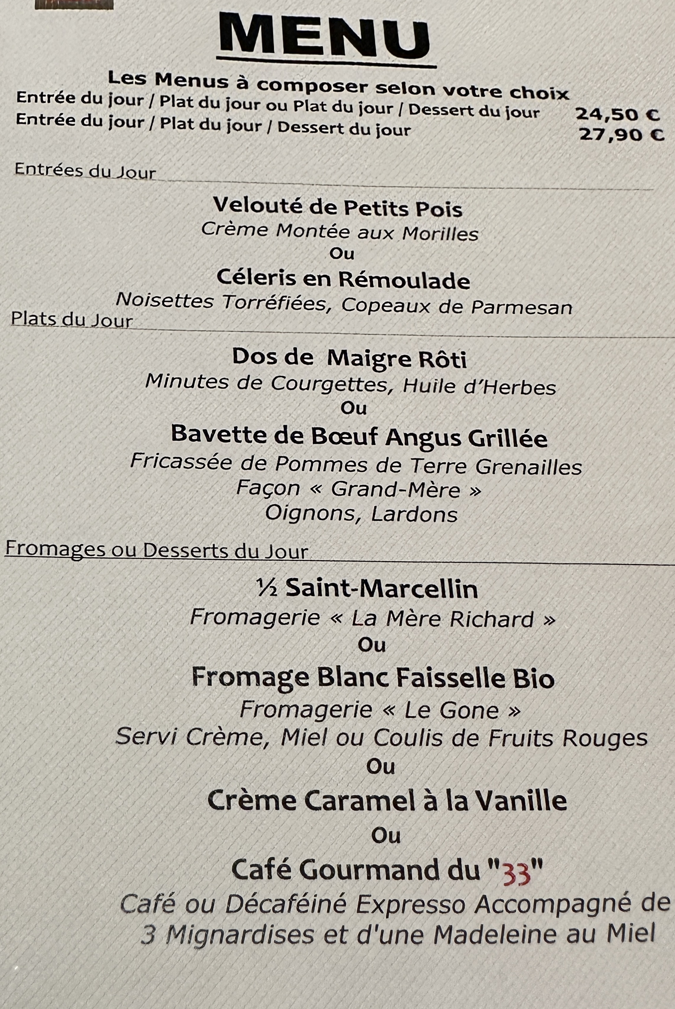 Le restaurant 33 cité ne donne pas du tout satisfaction, c'est cher pour ce que c'est, aucune envie d'y retourner. Les gros mangeurs s'abstenir car il n'y a rien dans l'assiette. Très décevant.