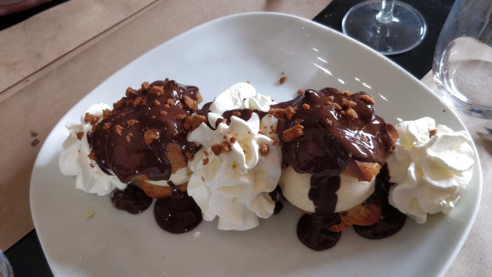 Profiteroles aux 4 Saisons à Peyruis ! Le Tout fait Maison, sauce aux morilles excellente et très bon rapport qualité-prix. 👍 Excellent repas ❤️❤️❤️