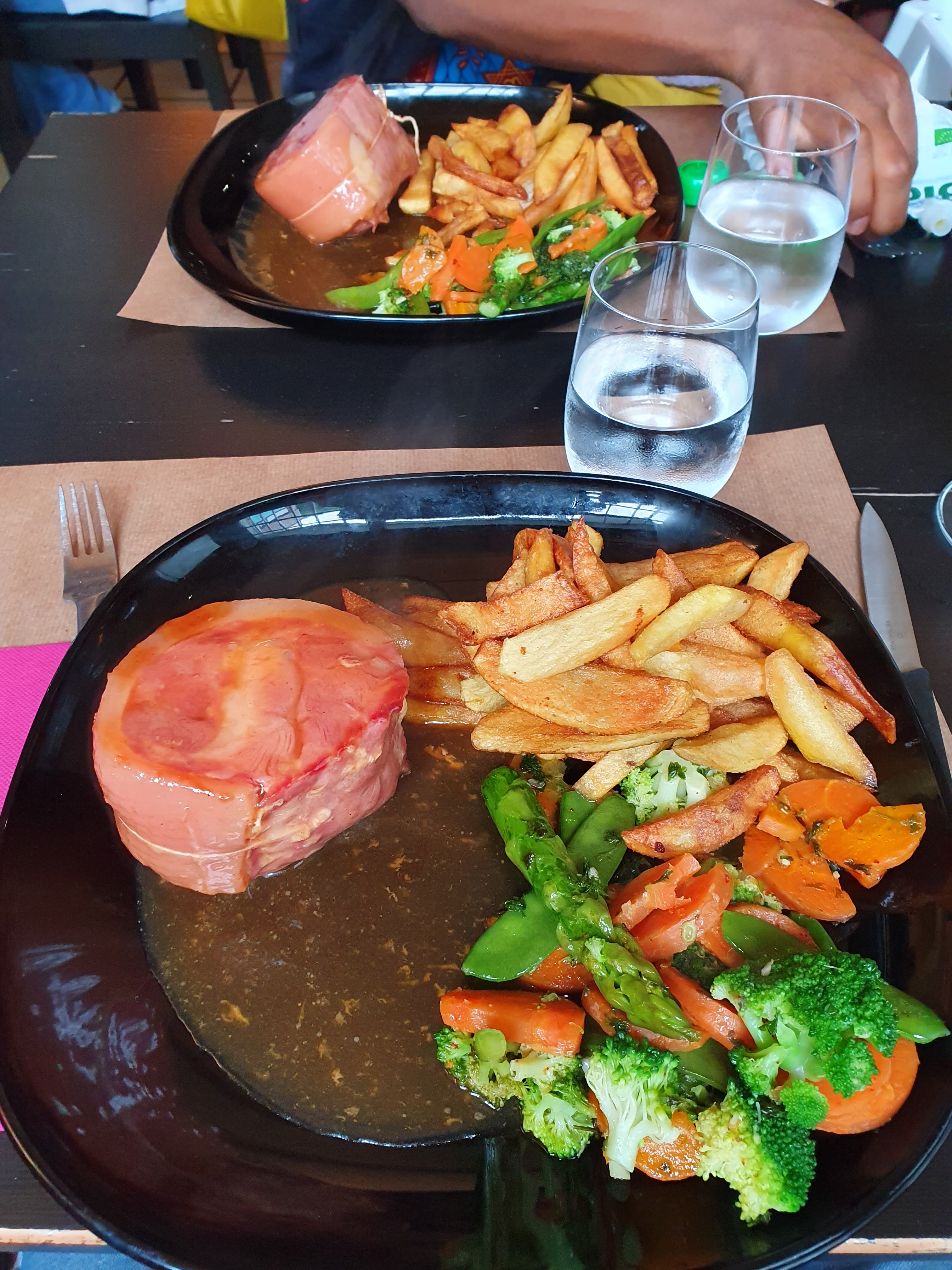 Excellent poulet Colombo, frites maison (...mais d'un autre monde !) et pour couronner le tout de copieuses et délicieuses profiteroles. A bientôt!!